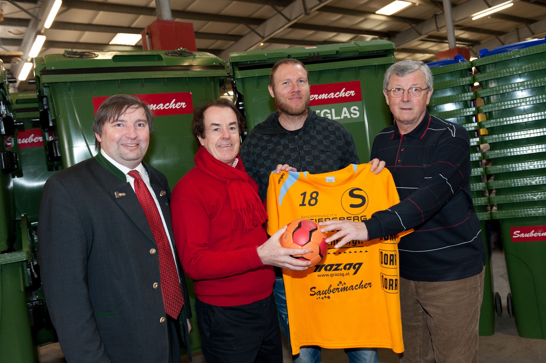 den Dress des HC Shoppingcity Seiersberg über. Saubermacher CEO Hans