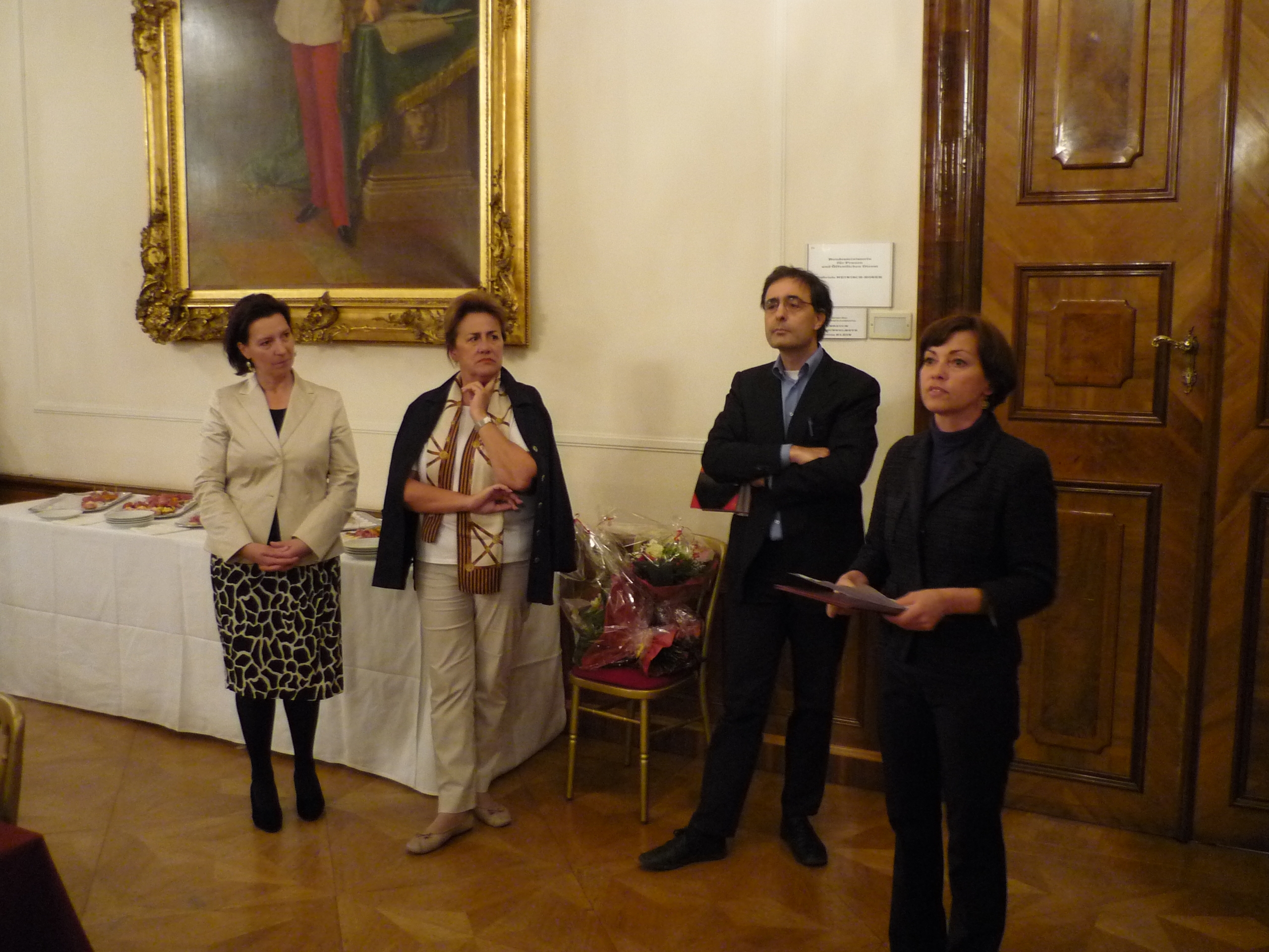 Von links nach rechts: Frauenministerin Heinisch-Hosek, Christa Pölzlbauer, Paul Gulda, Renata Schmidtkunz