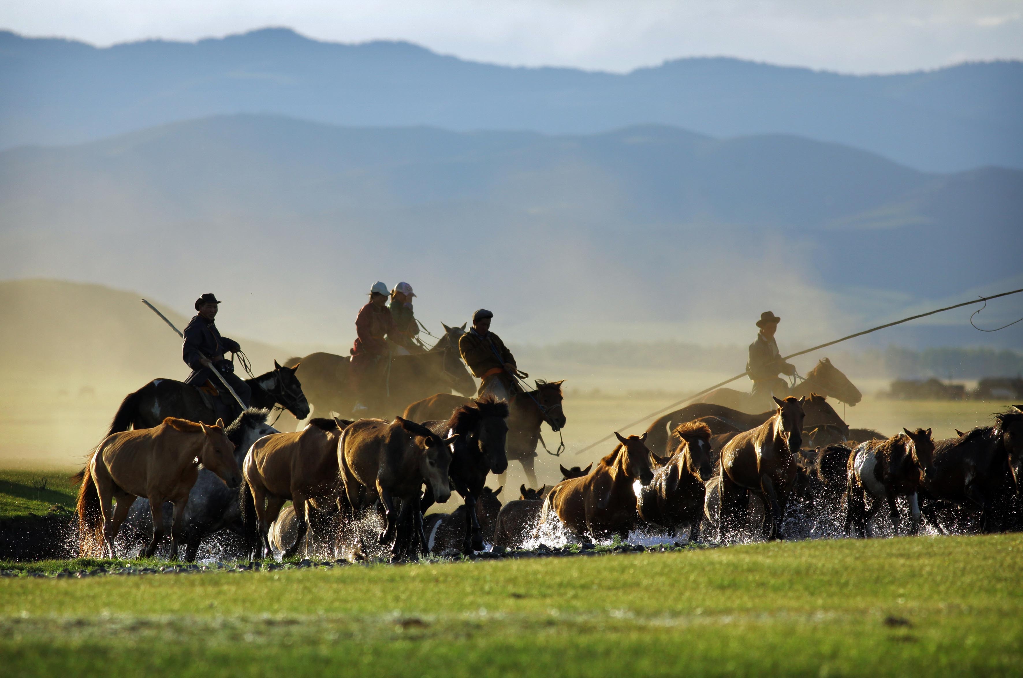 schon Kinder als unerschrockene Schlangenjäger. In der Mongolei hat