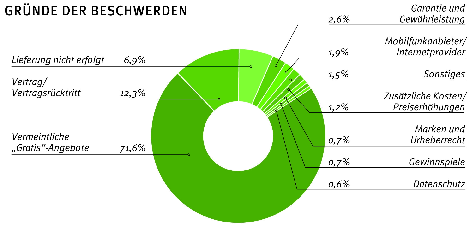 Beschwerdegründe. Sie waren für mehr als zwei Drittel (71,6%) aller