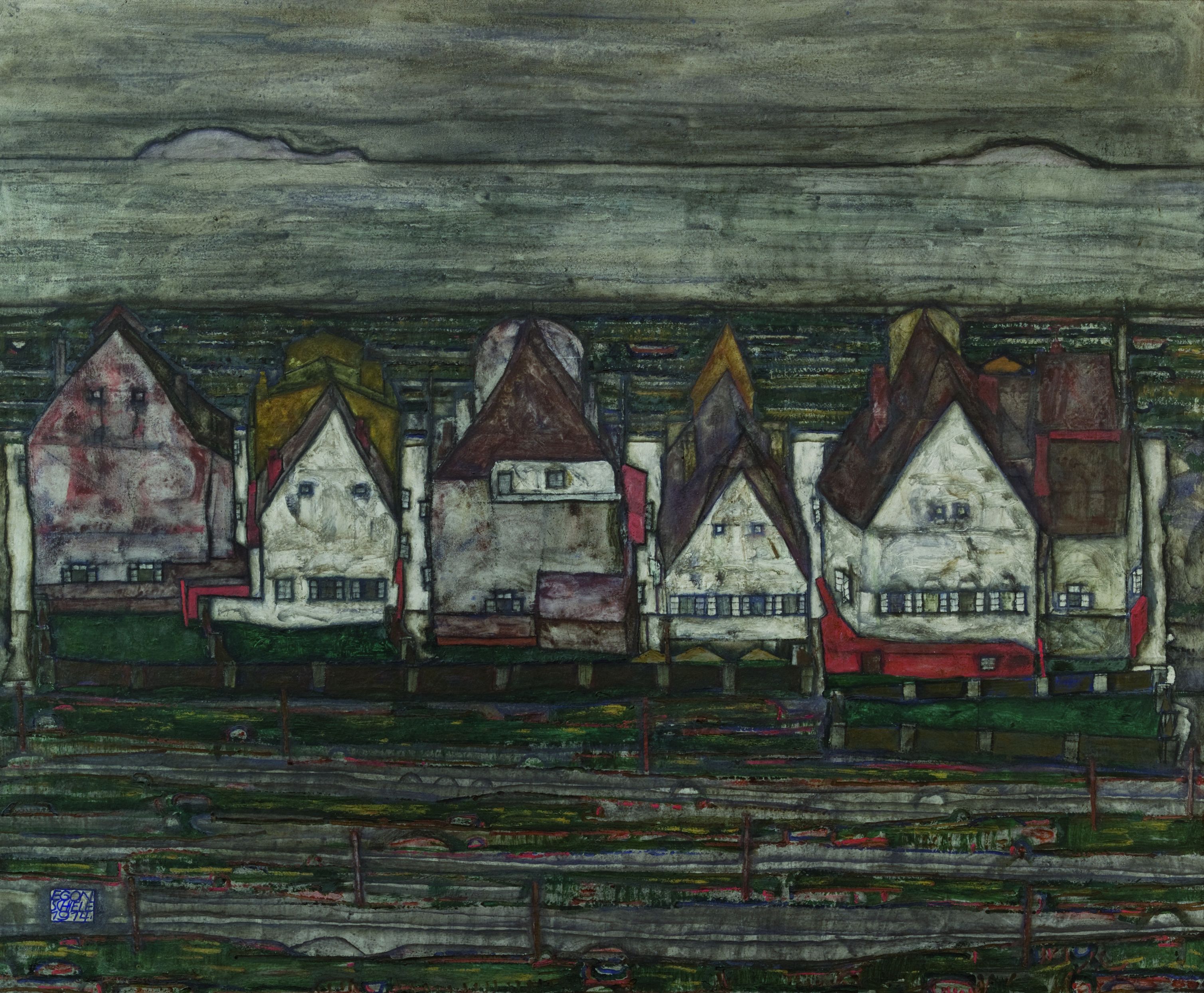 Schieles Stadtlandschaft "Häuser am Meer" (1914), ein Gemälde aus der