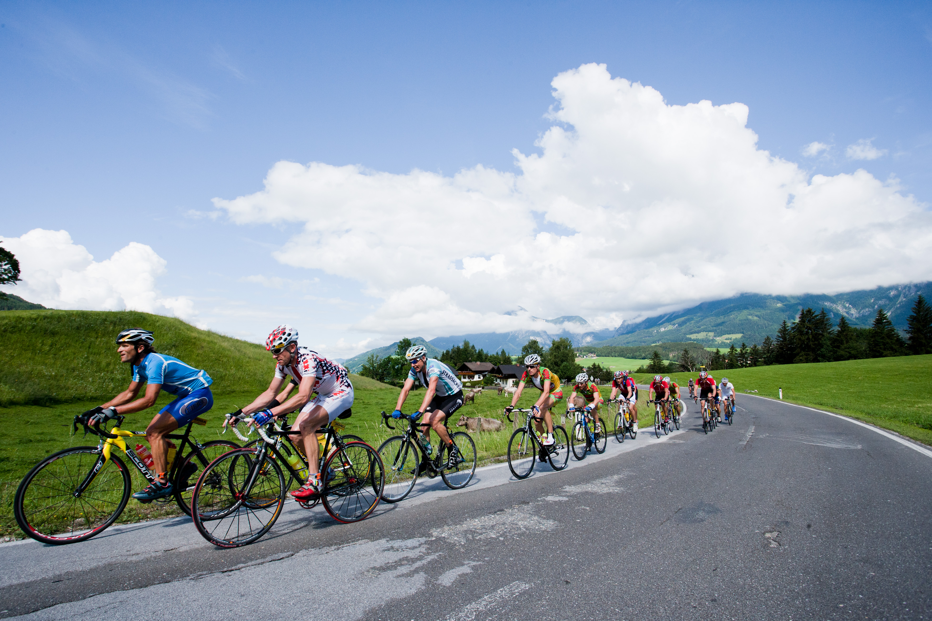selbst an der Startlinie stehen, im Fahrerfeld die Alpenpässe