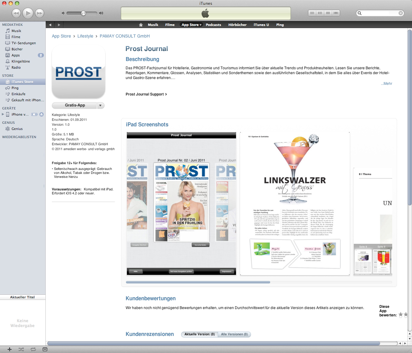 PROST Gastro-Fachjournal jetzt auch gratis auf dem iPad - BILD