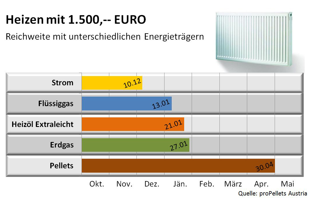 kürzer. Wer hingegen für dieselbe Summe Pellets gekauft hat, kann