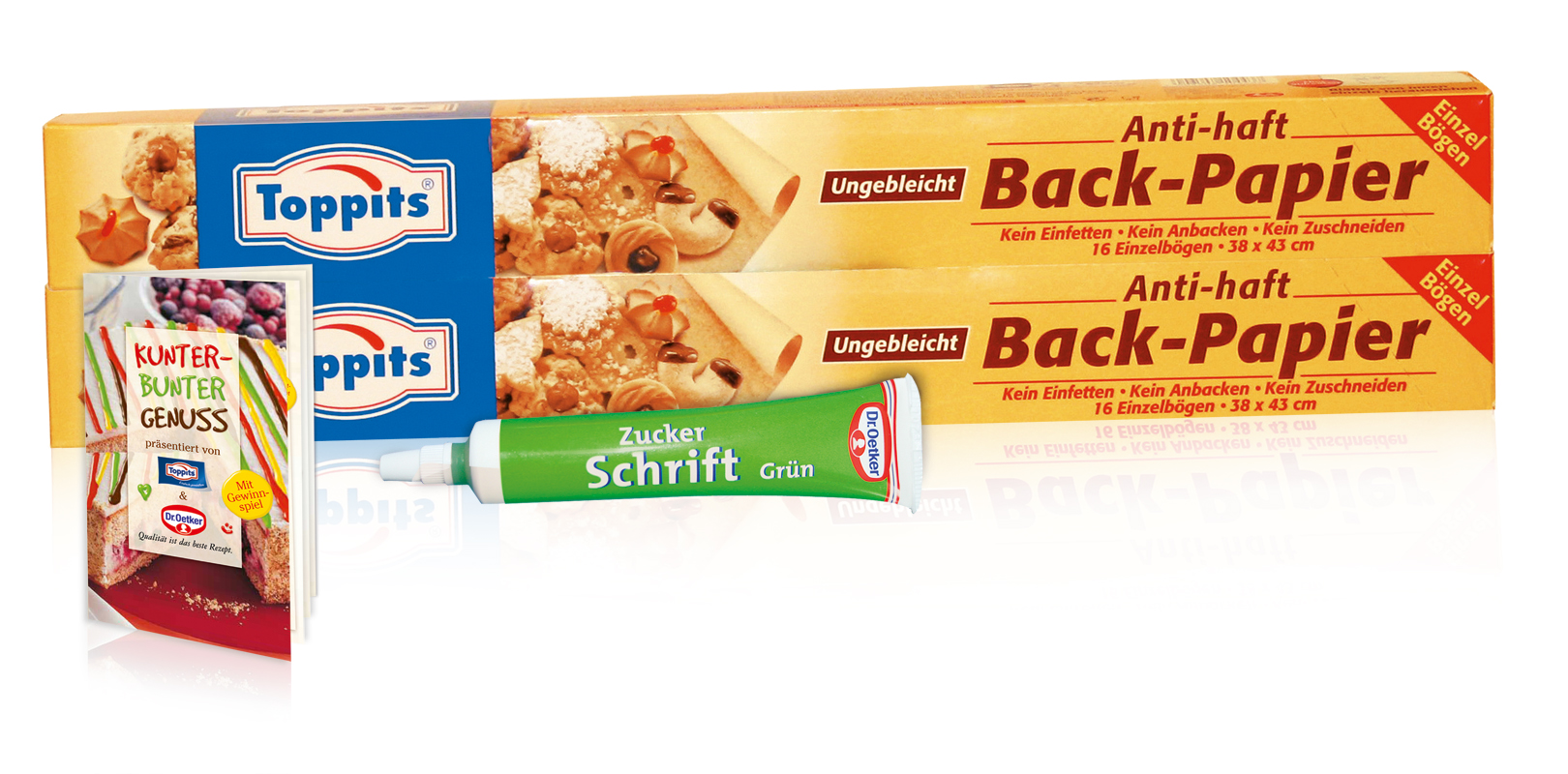Oetker Zuckerschriften inklusive Rezeptheft zur Inspiration bei.
