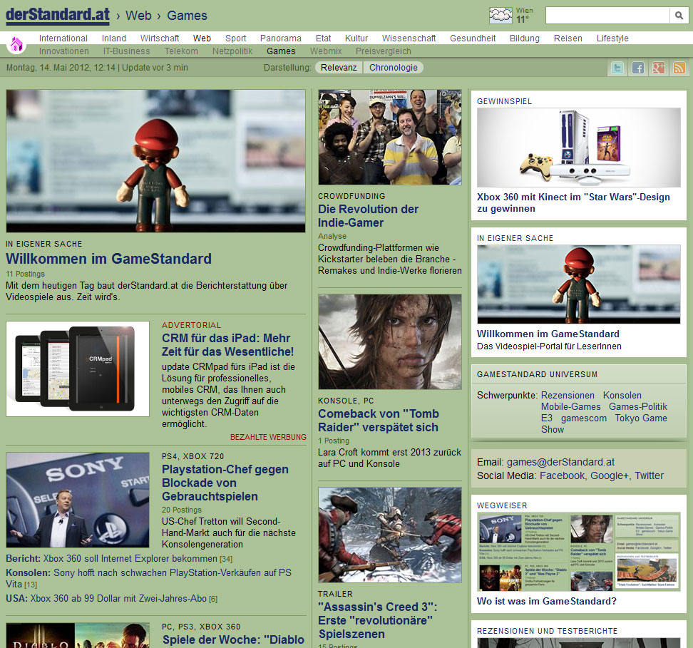 Der GameStandard ist auf der Startseite von derStandard.at und im