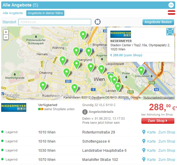 automatisch die nächstliegende Filiale angezeigt, in der das Produkt