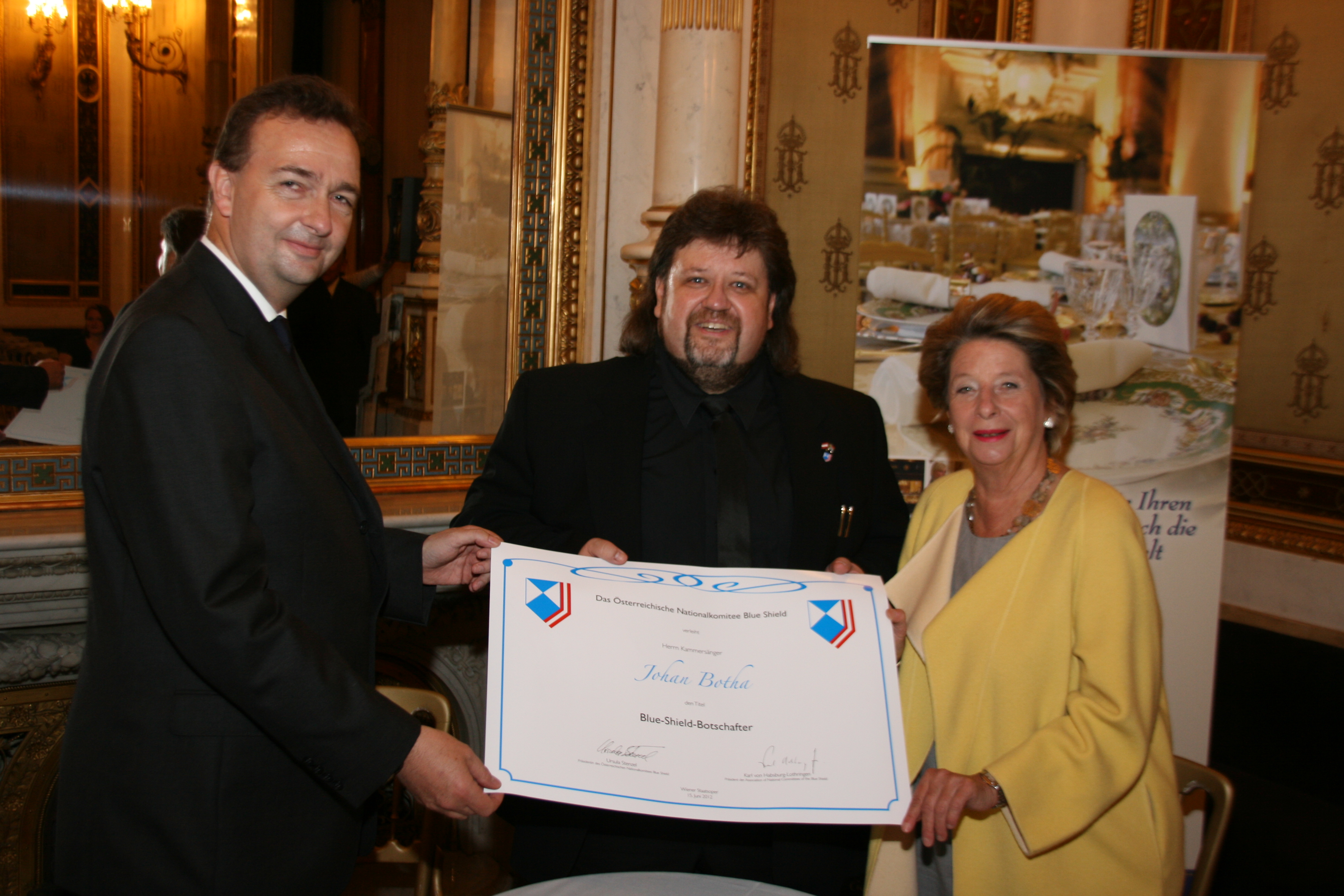 Titel eines Blue-Shield-Botschafters an Kammersänger Johan Botha. Die