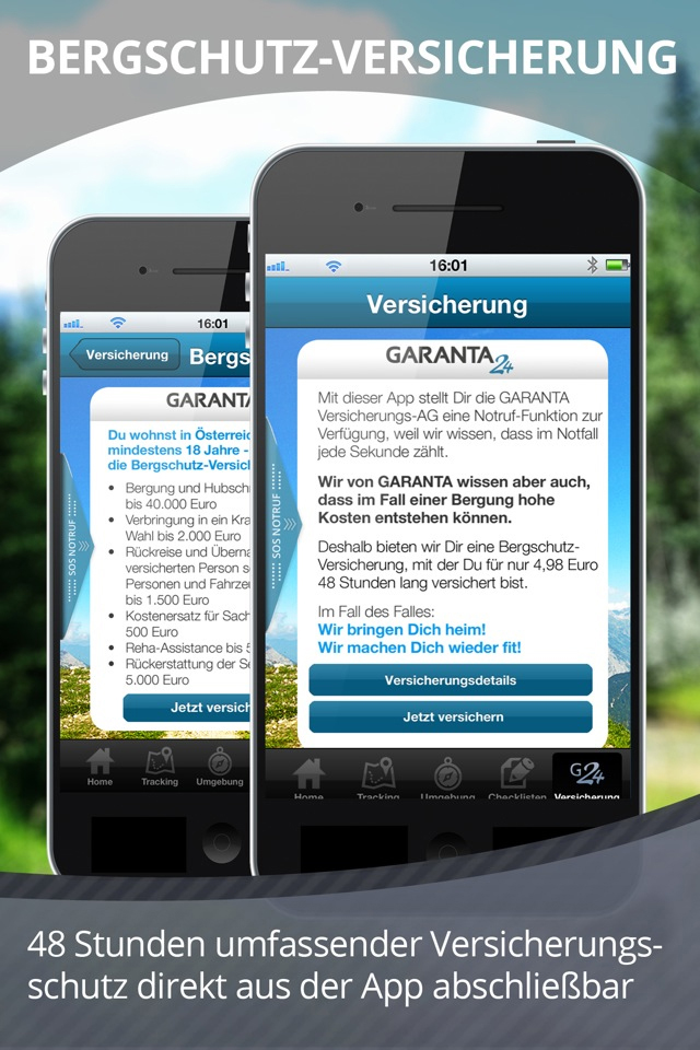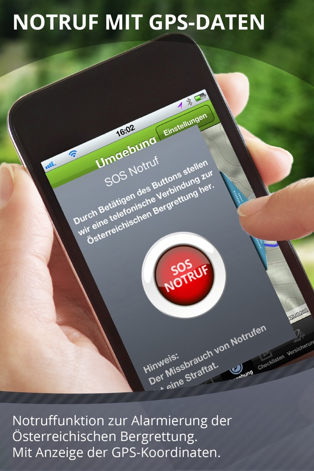 - Tracking ermöglicht das Aufzeichnen der sportlichen Tätigkeiten - Karten mit Point of Interest, Infos und Wetterdaten - Notruf Funktion direkt zur Österreichischen Bergrettung mit Anzeige der aktuellen GPS-Daten in der App - Berg-Checklisten - GARANTA24 Bergschutz-Versicherung *) (48 Stunden für Euro 4,98)
