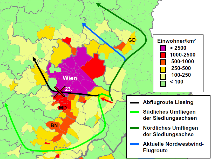 sollen. Statt auch über dichtest besiedelte Gebiete wie Liesing zu