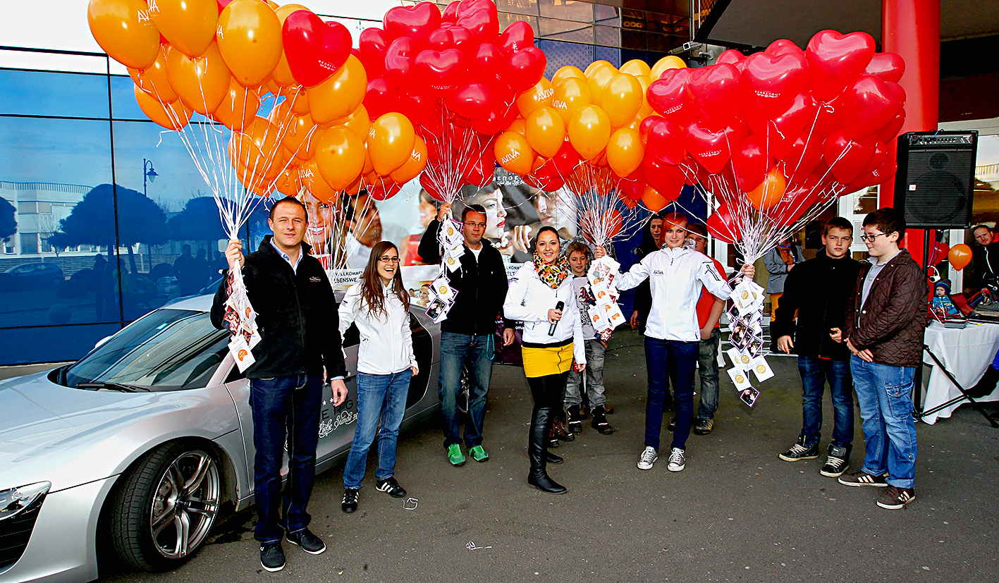 steigen. An jedem einzelnen Luftballon baumelt ein Gutschein für