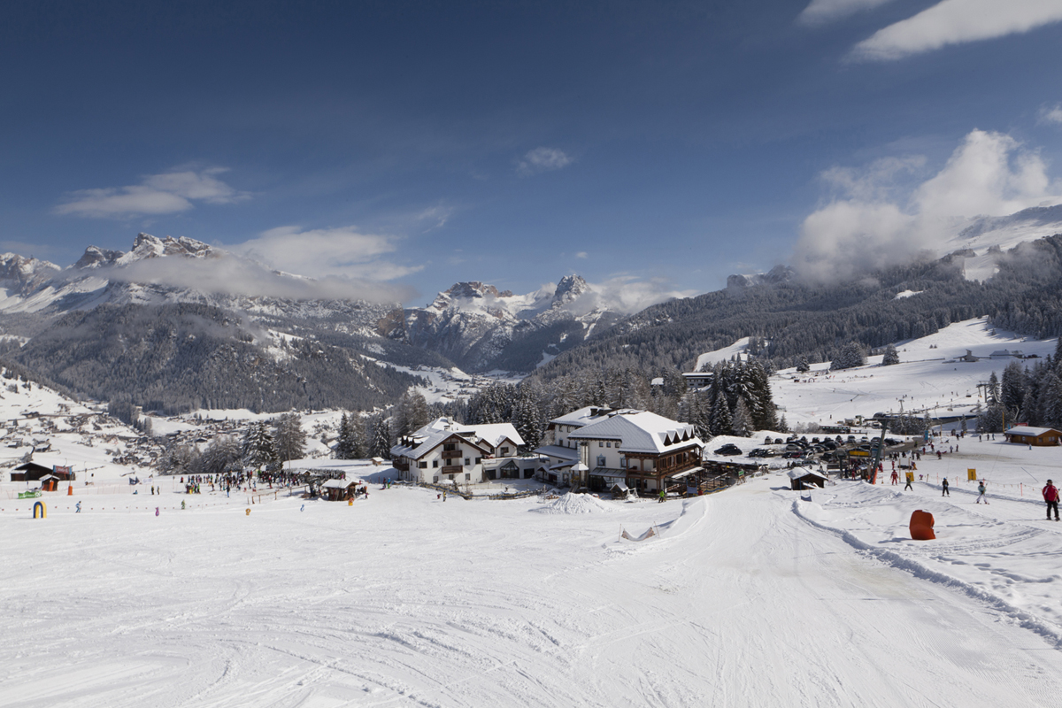 umliegenden Pisten. Die Region Gröden ist Teil des weltgrößten