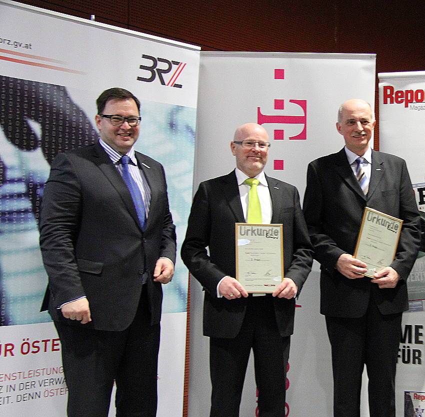 Keldorfer und Dr. Leopold Gallner über den 1. Preis beim "eAward