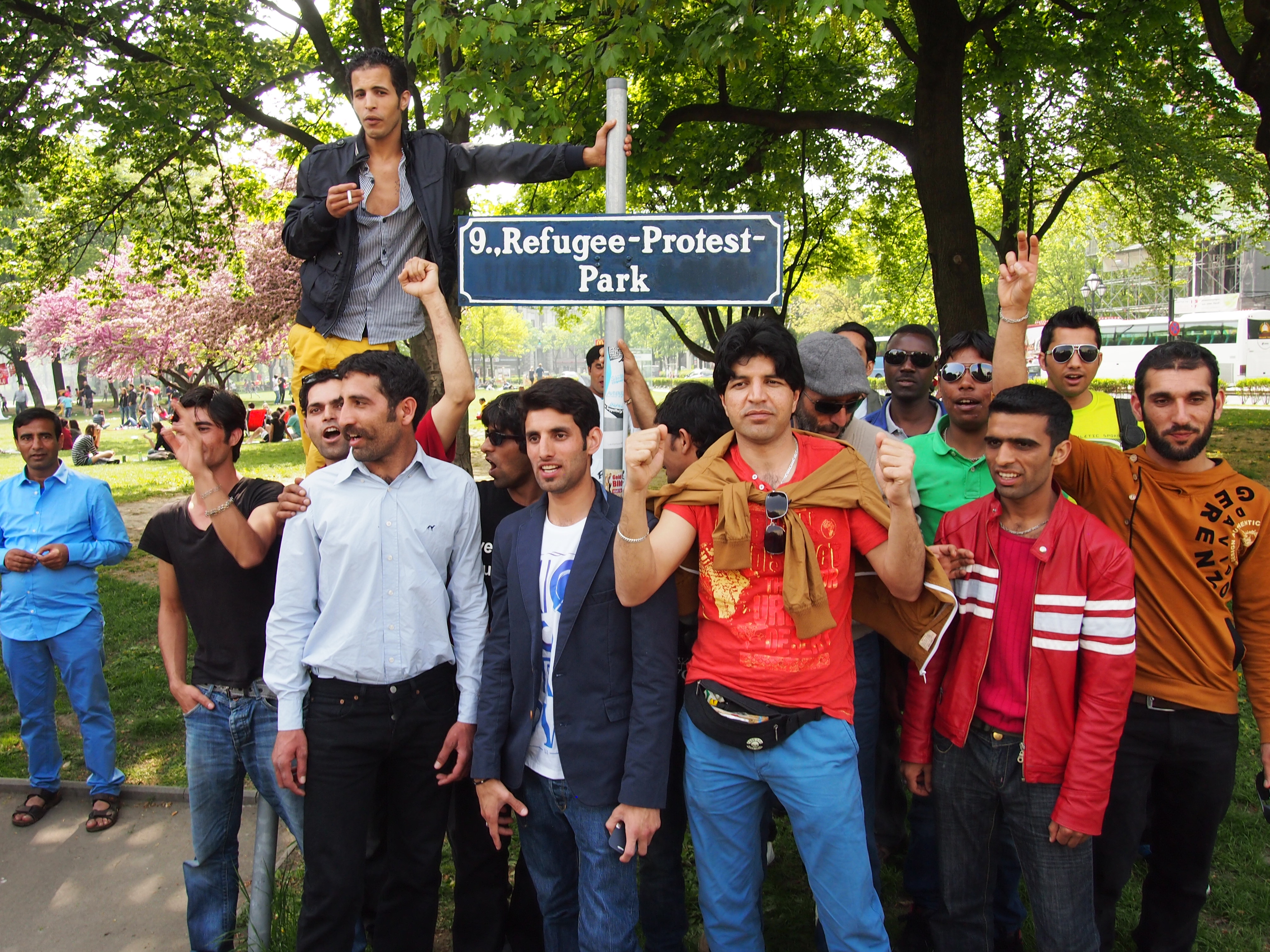 nun symbolisch in "Refugee Protest Park" umgetauft.