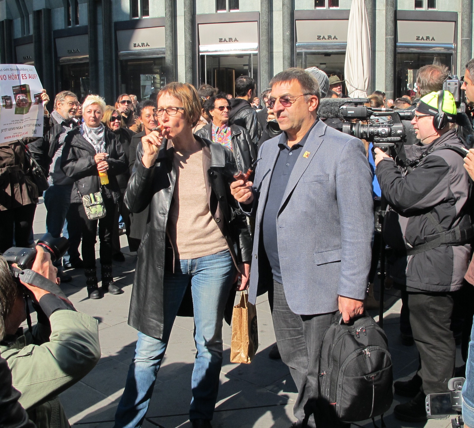 in ihren Lokalen protestieren und Trafikanten, die gegen die