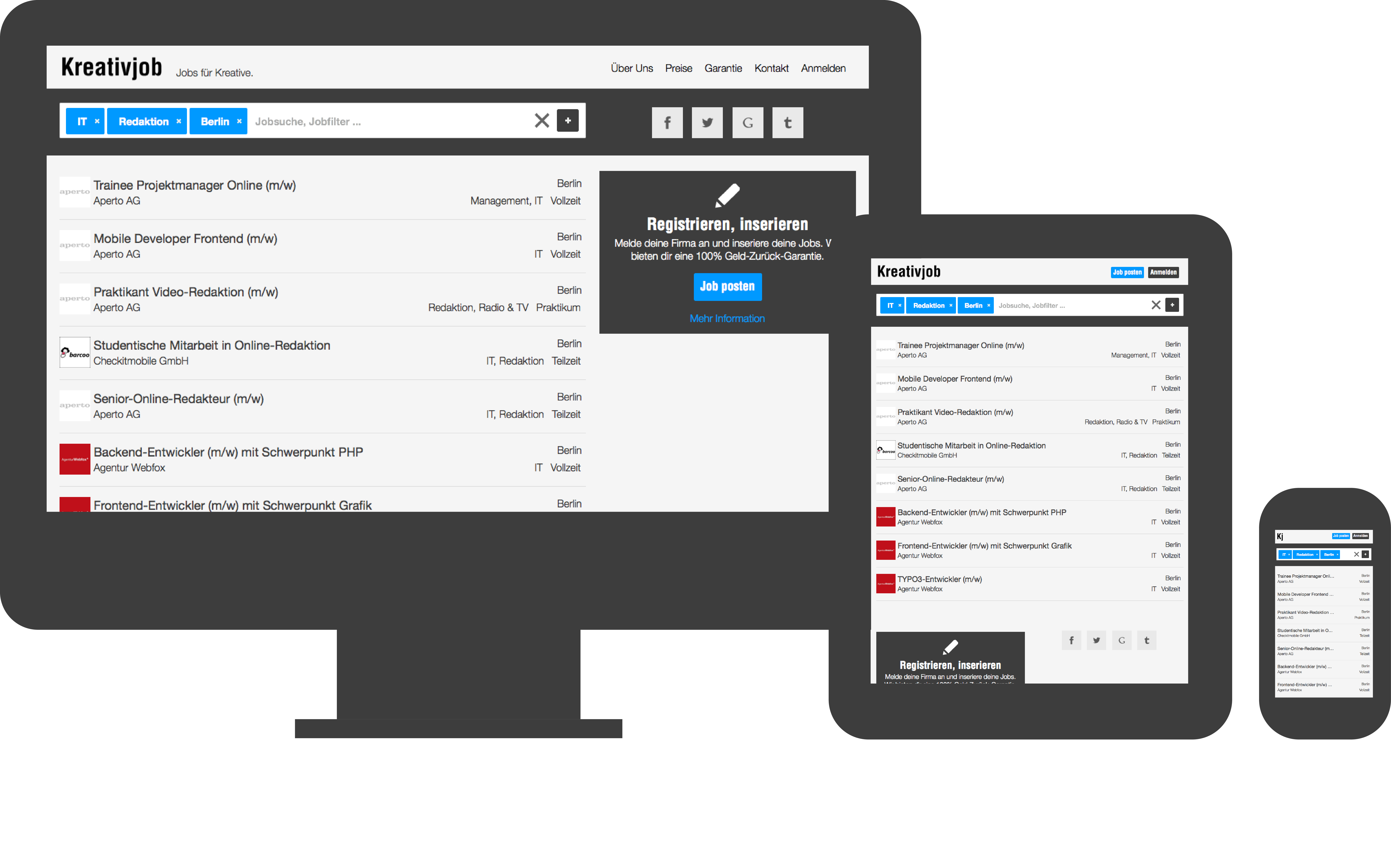 Kreativjob nutzt dafür nicht nur die eigene Website