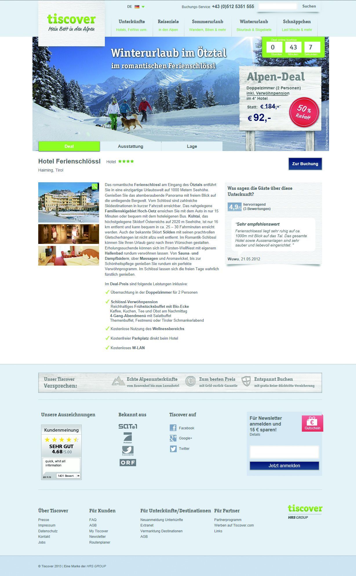 der in Köln ansässigen HRS Group. Tiscover.com, das Urlaubsportal für