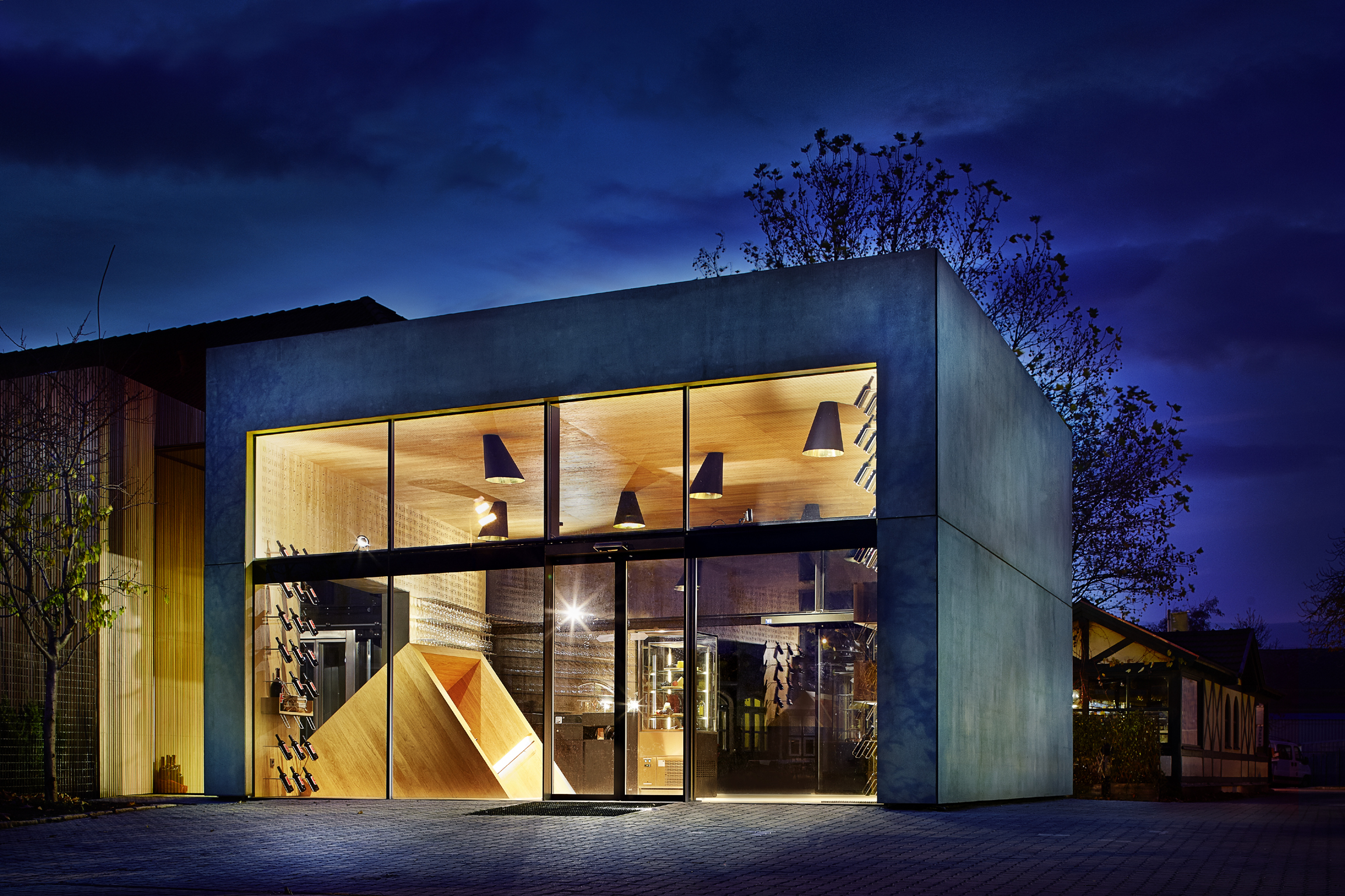 Beton empfängt der Neubau des Heurigenweinguts Frühwirth in Teesdorf