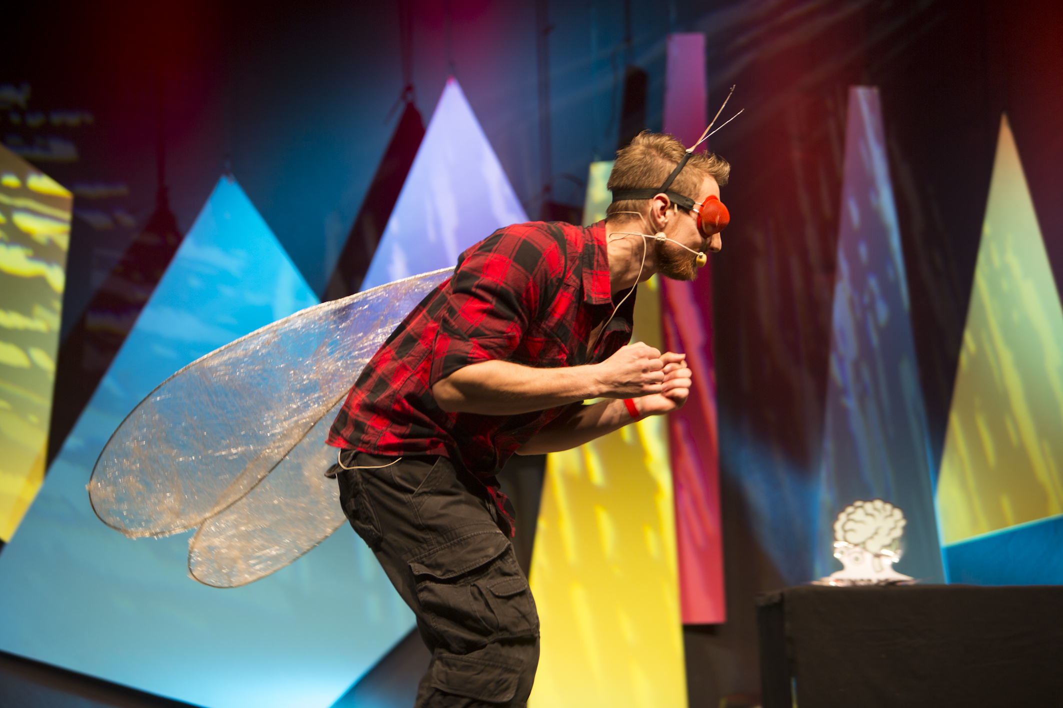 Martin Moder schwirrte im Fruchtfliegen-Kostüm auf die Bühne und