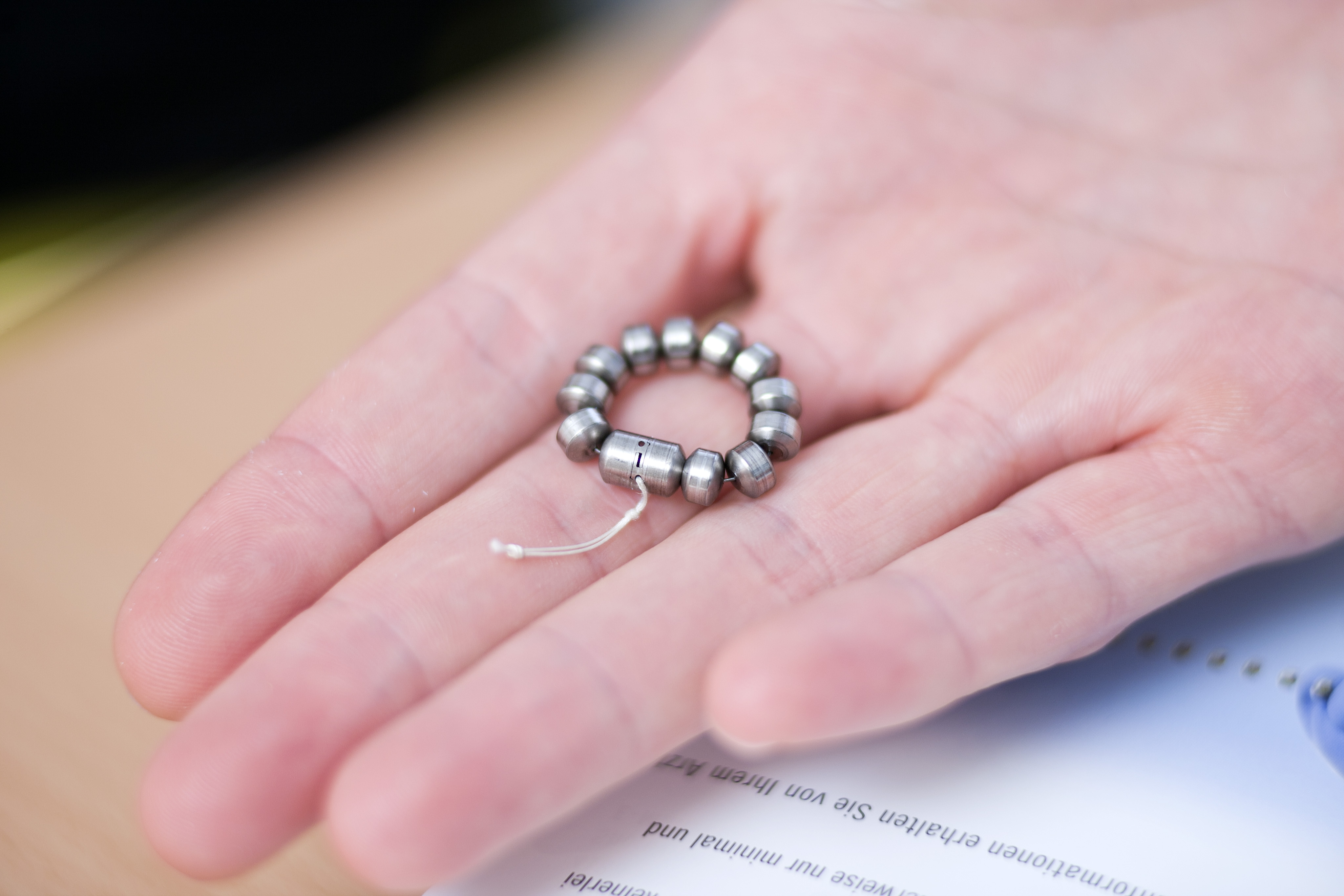 Mageneingang angebracht. Der Ring besteht aus feinen Titan-Perlen und