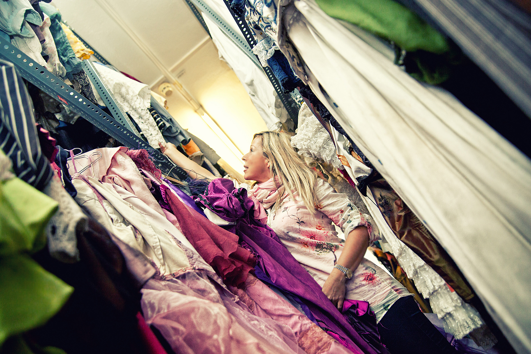 Materiallager der Kostümwerkstatt von art + event zum Verkauf angeboten.
