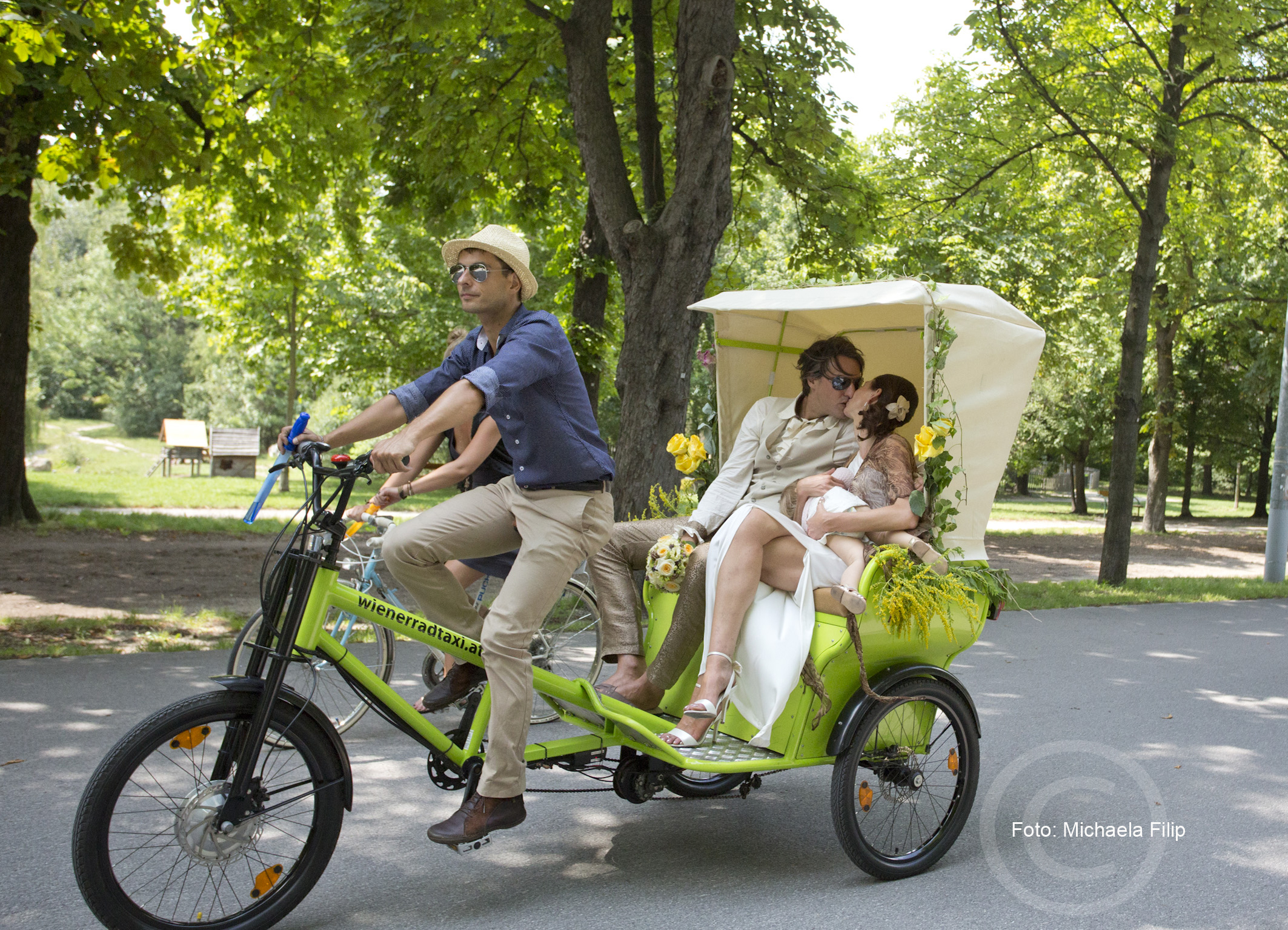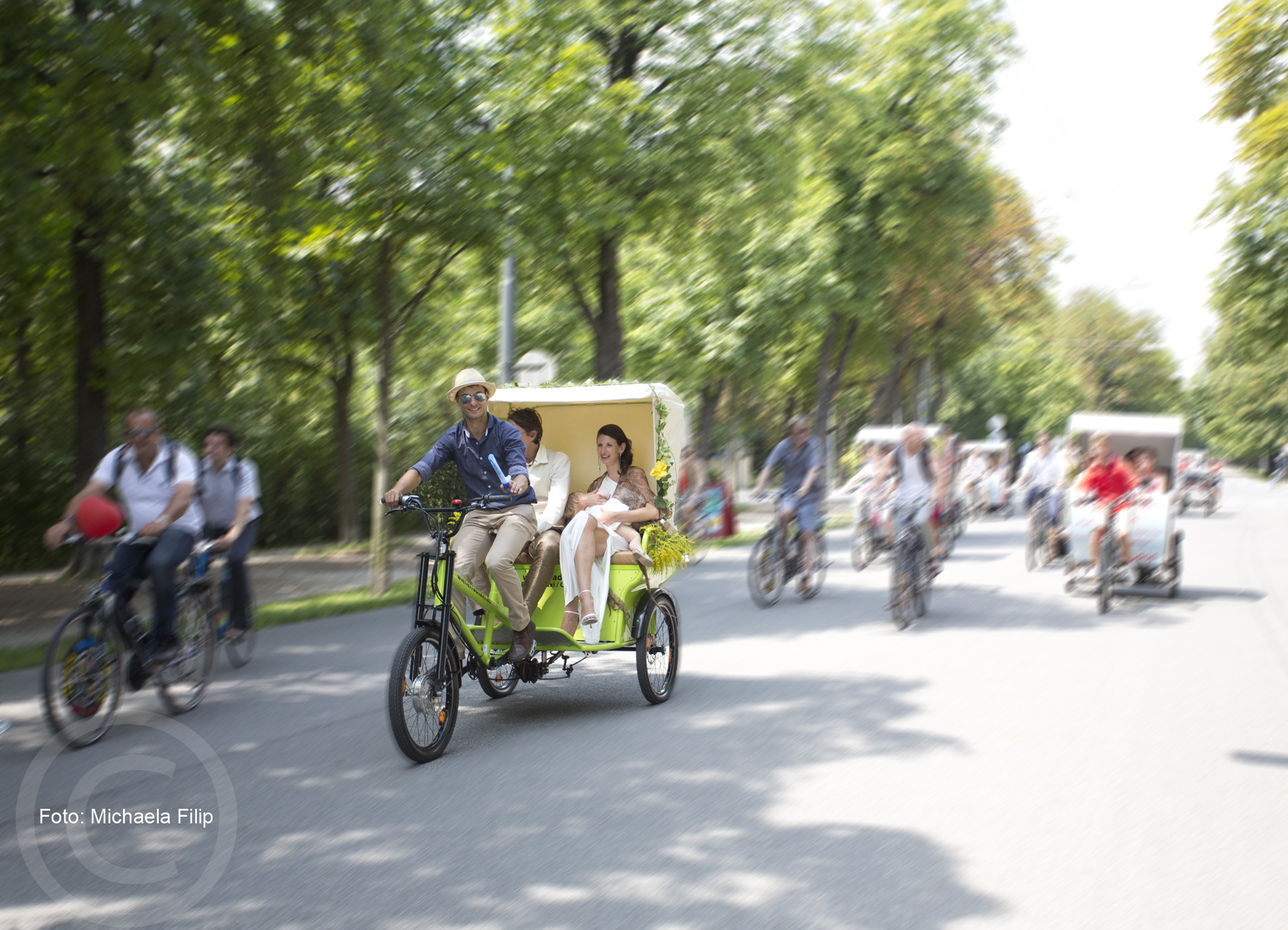 Hochzeit einmal anders. Hundert Menschen feiern auf 155 Rädern Wiens erstes Green Wedding.