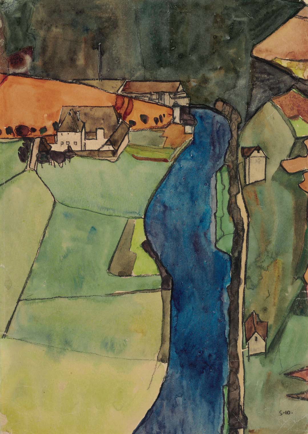 das Gemälde von Egon Schiele Stadt am blauen Fluss (Krumau) mit einem