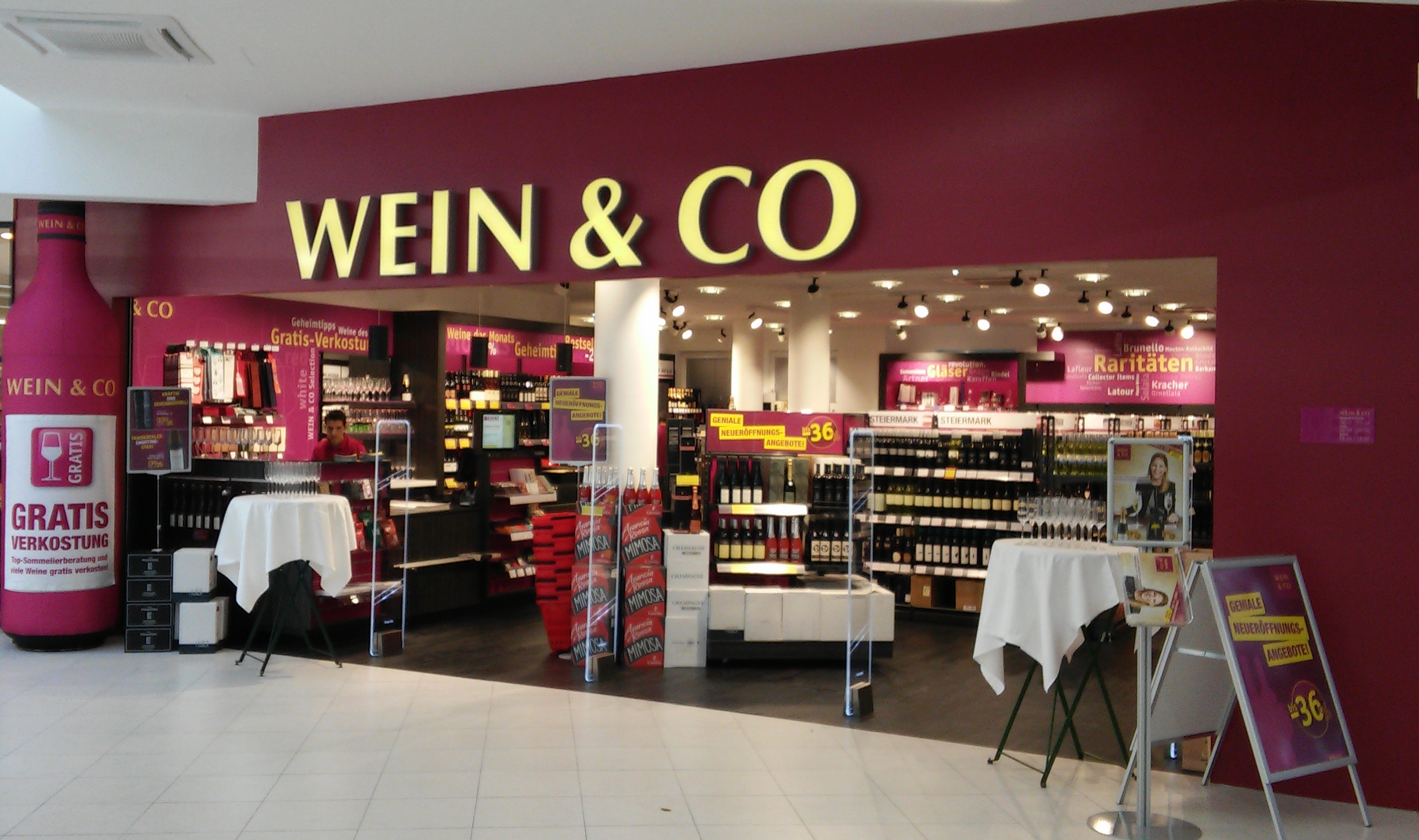 zu 30 verschiedene Weine gratis zu probieren. Die WEIN & CO-Filiale