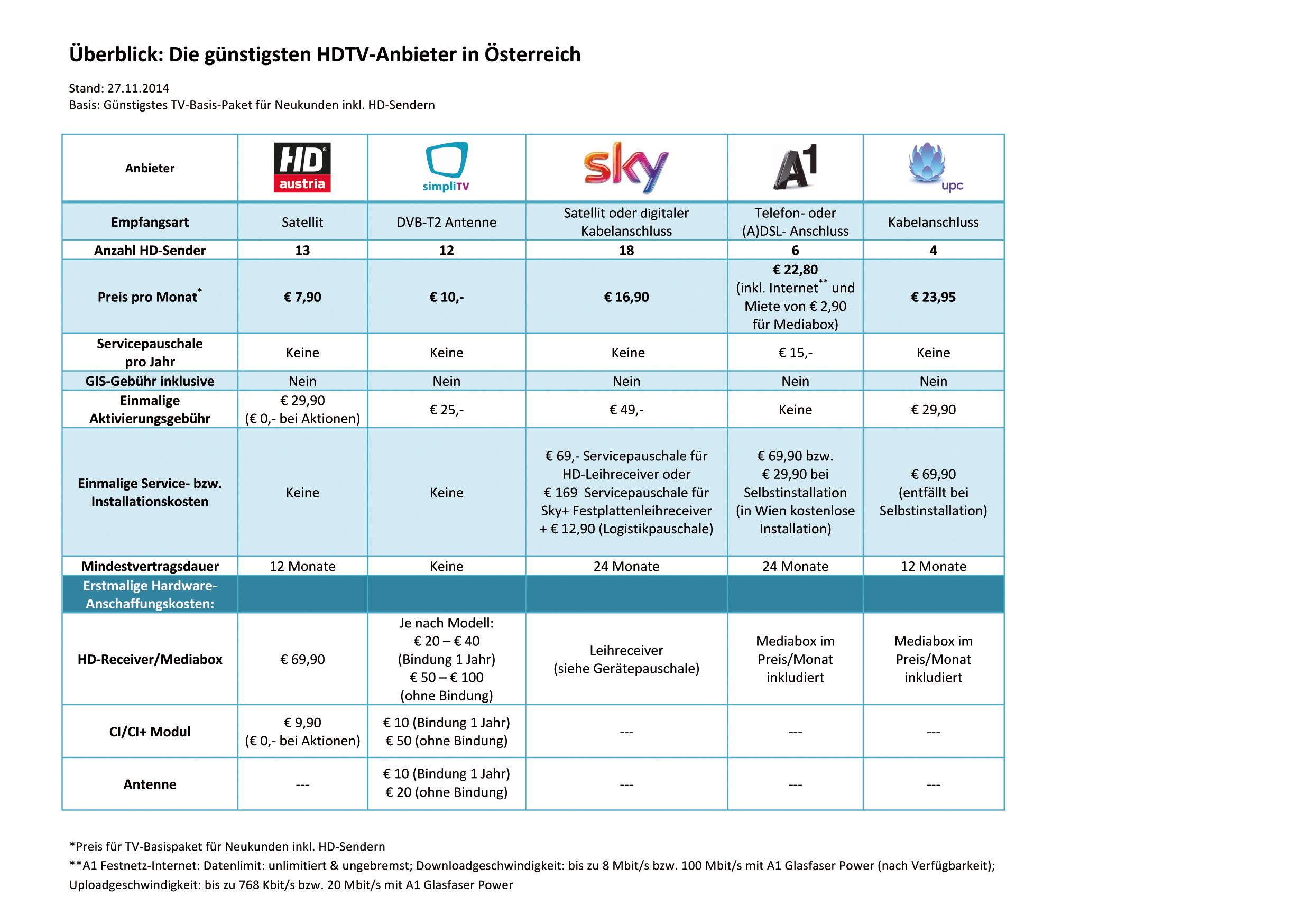 Wien (OTS) - Im direkten Vergleich mit den größten HDTV-Anbietern des