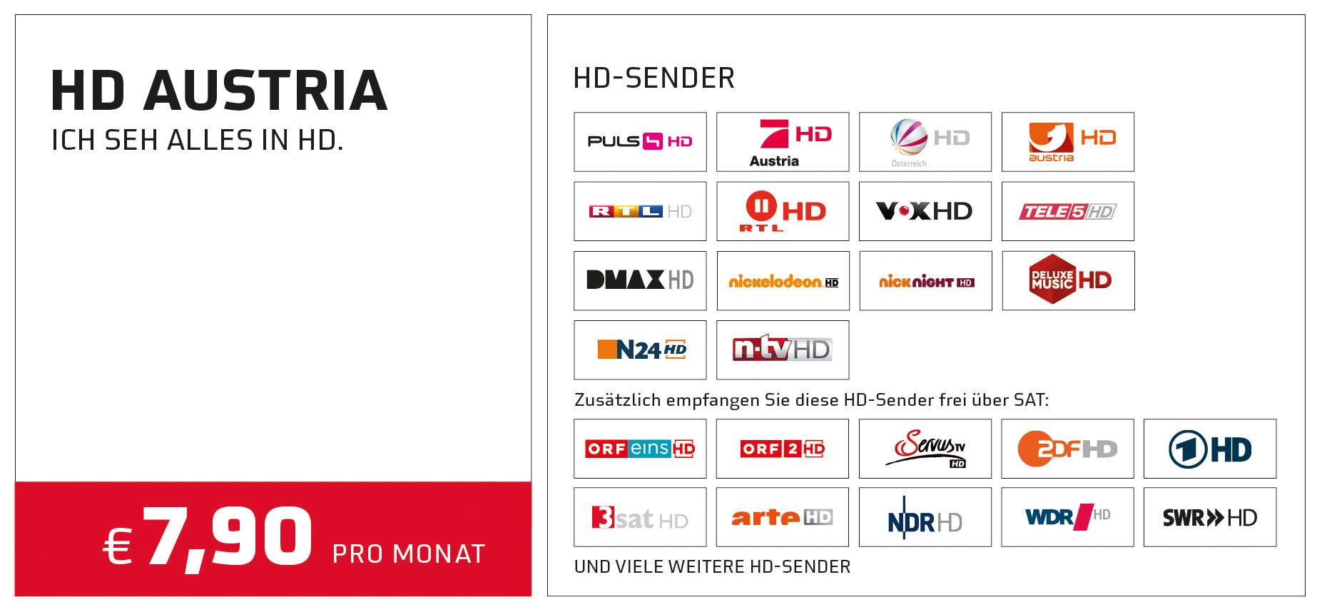 Der Preis-Leistungssieger HD Austria bietet um Euro 7,90 pro Monat 13