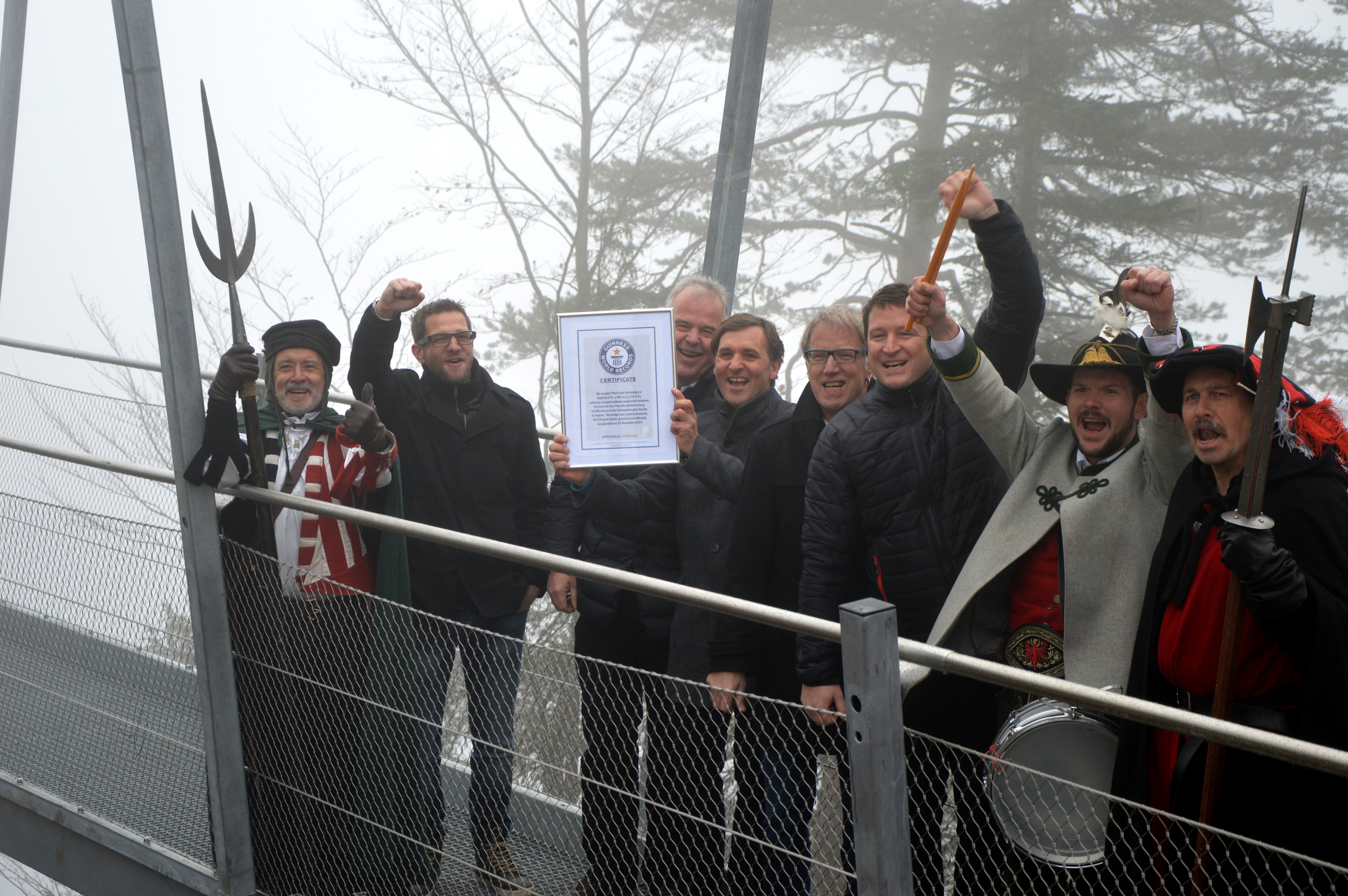 Nach einigen spannenden Tagen und Wochen darf sich die highline179 nun über die Eintragung ins Guinness Buch in der Kategorie Tibet Style Fußgängerhängebrücke freuen.