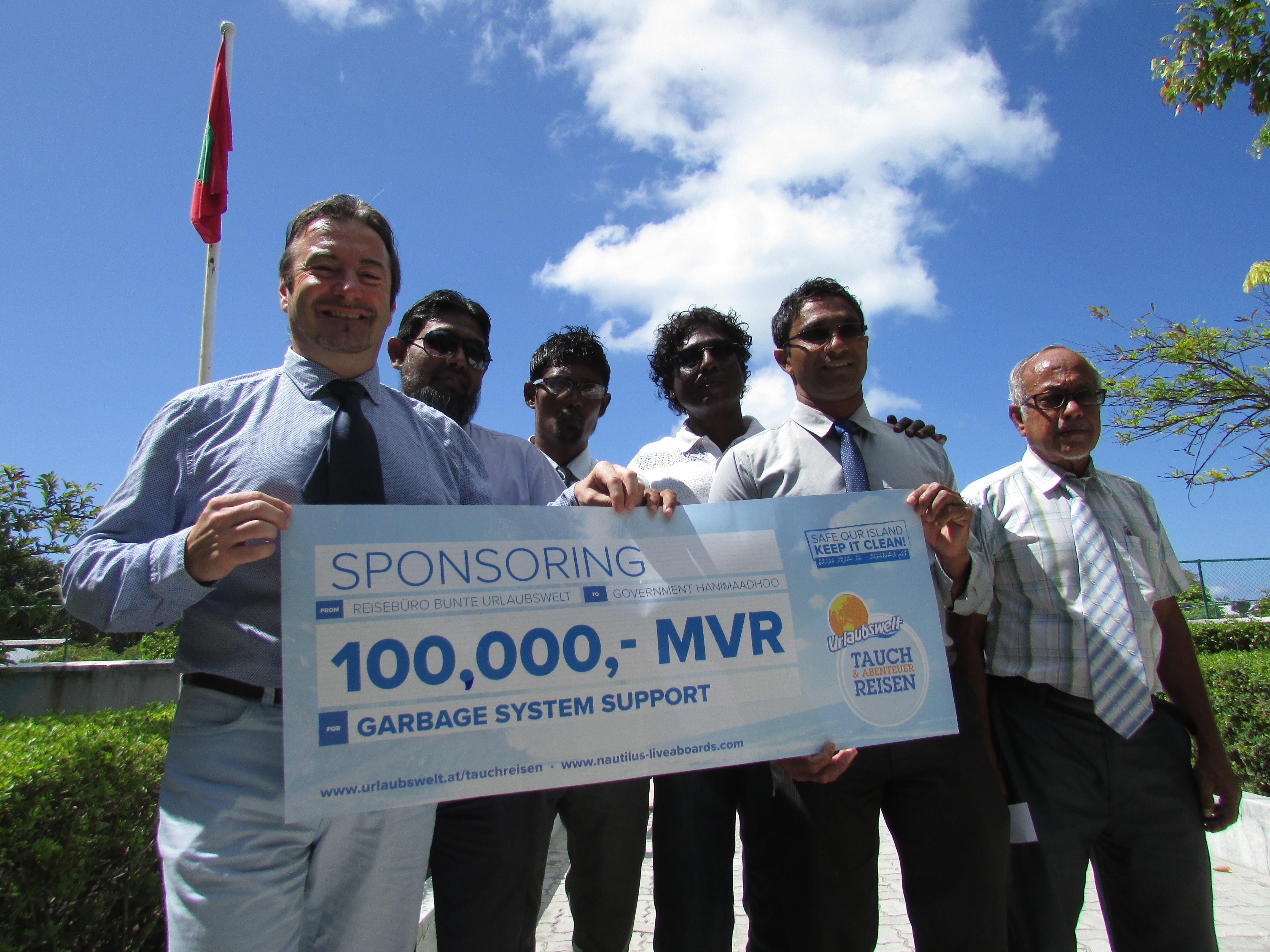 Alois Männer und das Reisebüro Bunte Urlaubswelt sponsern ein neues Müllentsorgungsprojekt mit 100.000 Malediven-Rupien (ca. 7.800 USD), um die Malediven in ihrer Schönheit zu erhalten.