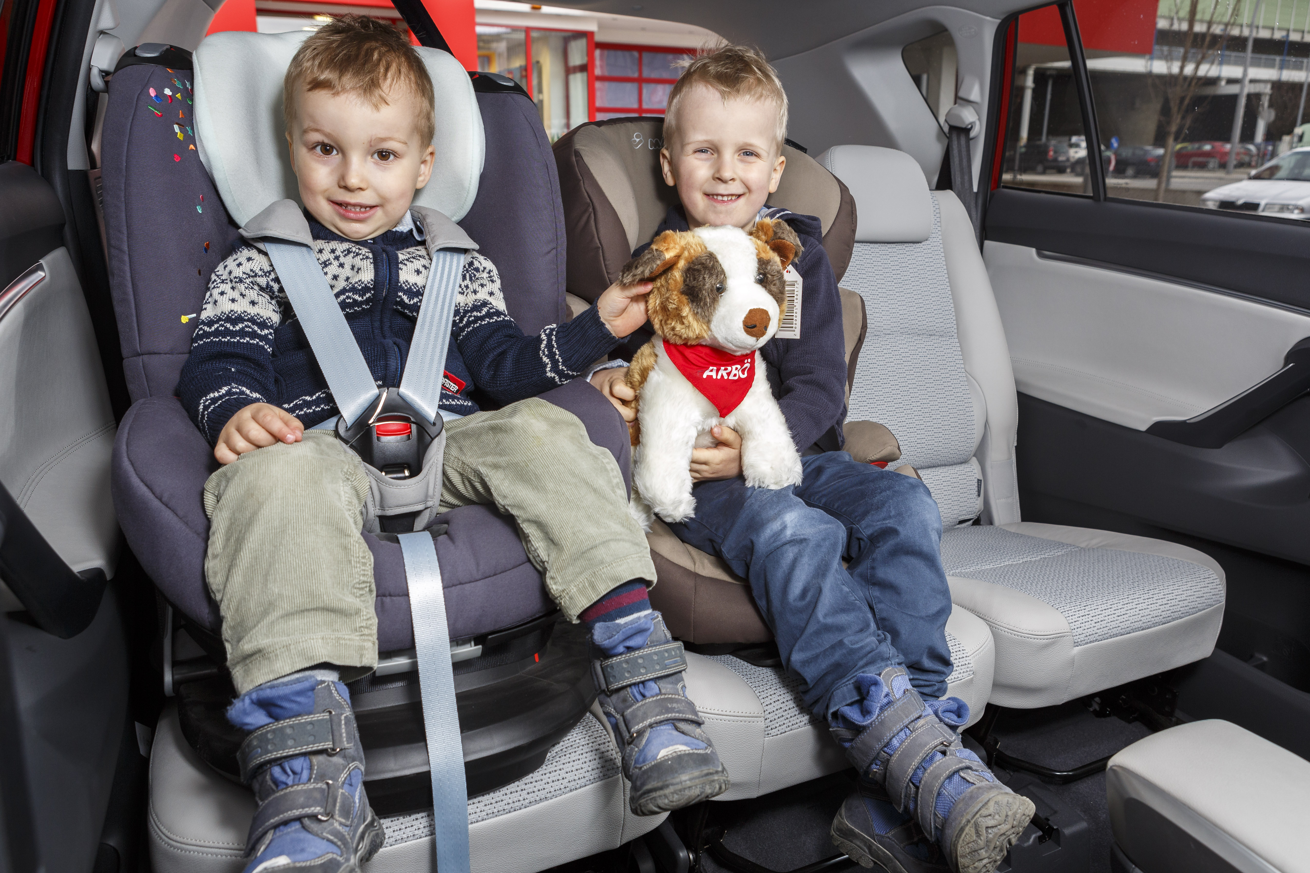 Diese müssen mit Sicherheitsgurt auf Sitzen, die ihrem Gewicht und