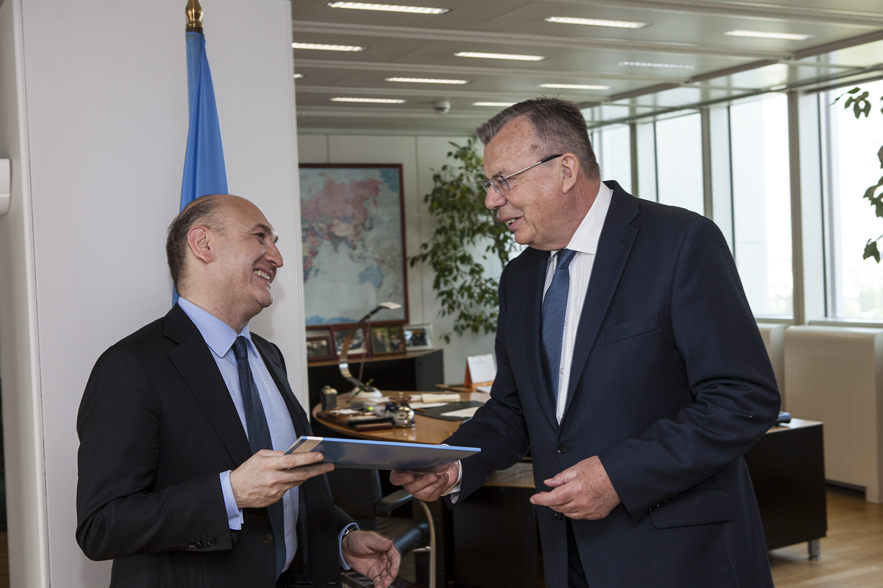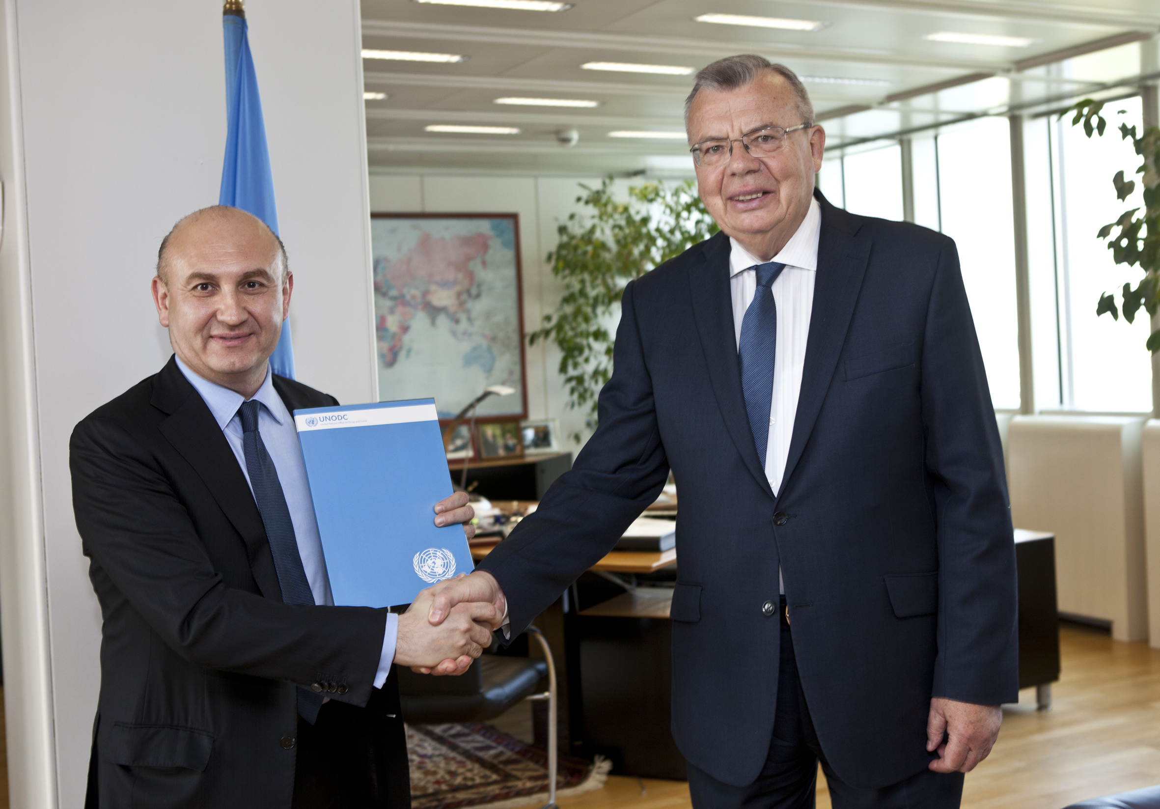 Yury Fedotov, Leiter des UNODC UN-Büros für Drogen- und Kriminalitätsbekämpfung, ernannte Mag. Ali Rahimi am Sitz der Vereinten Nationenzum nationalen UNODC Ehrenbotschafter.