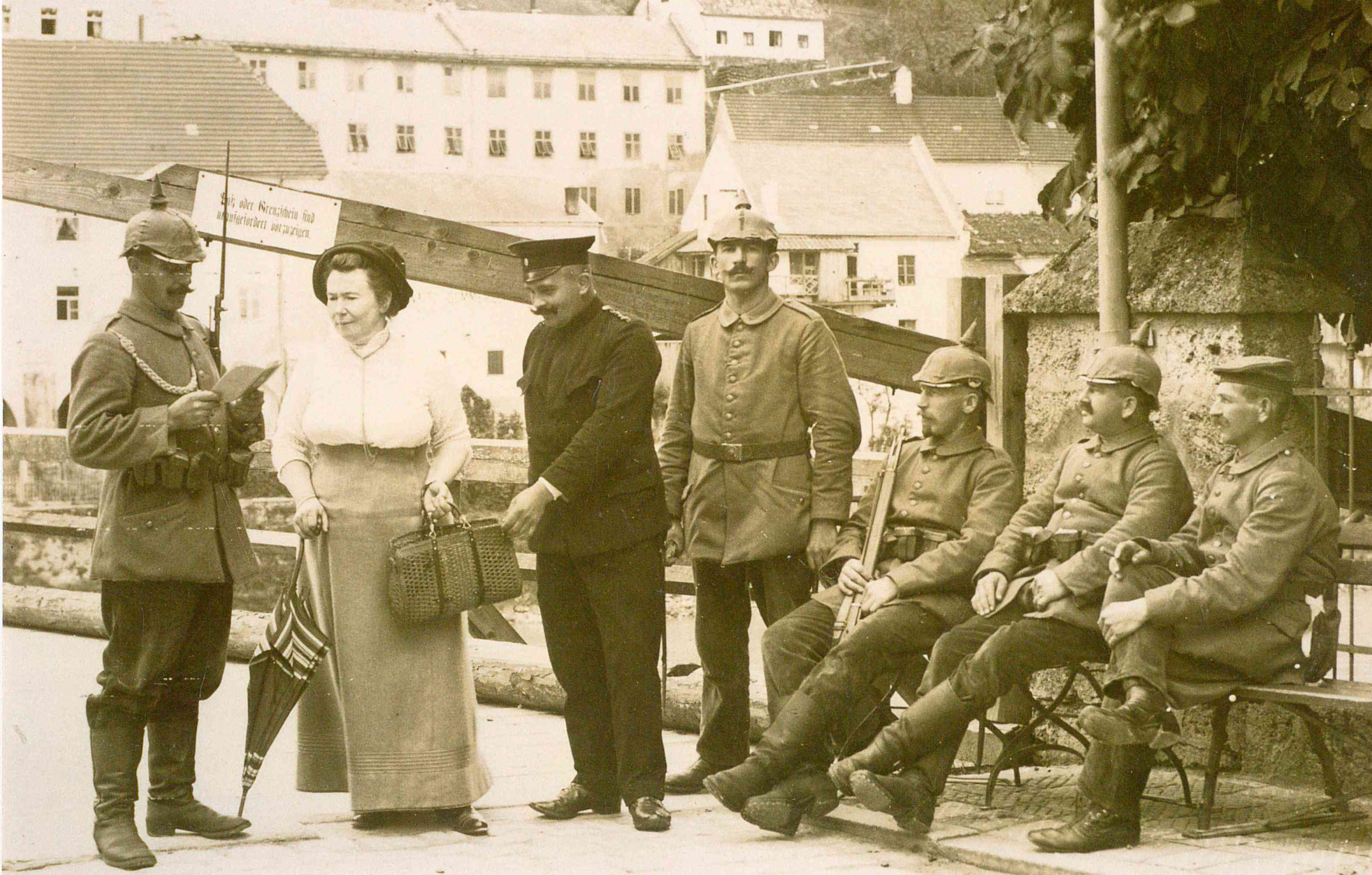 heutigen Hotel Post am Stadtplatz zusammen mit tapferen Burghausern