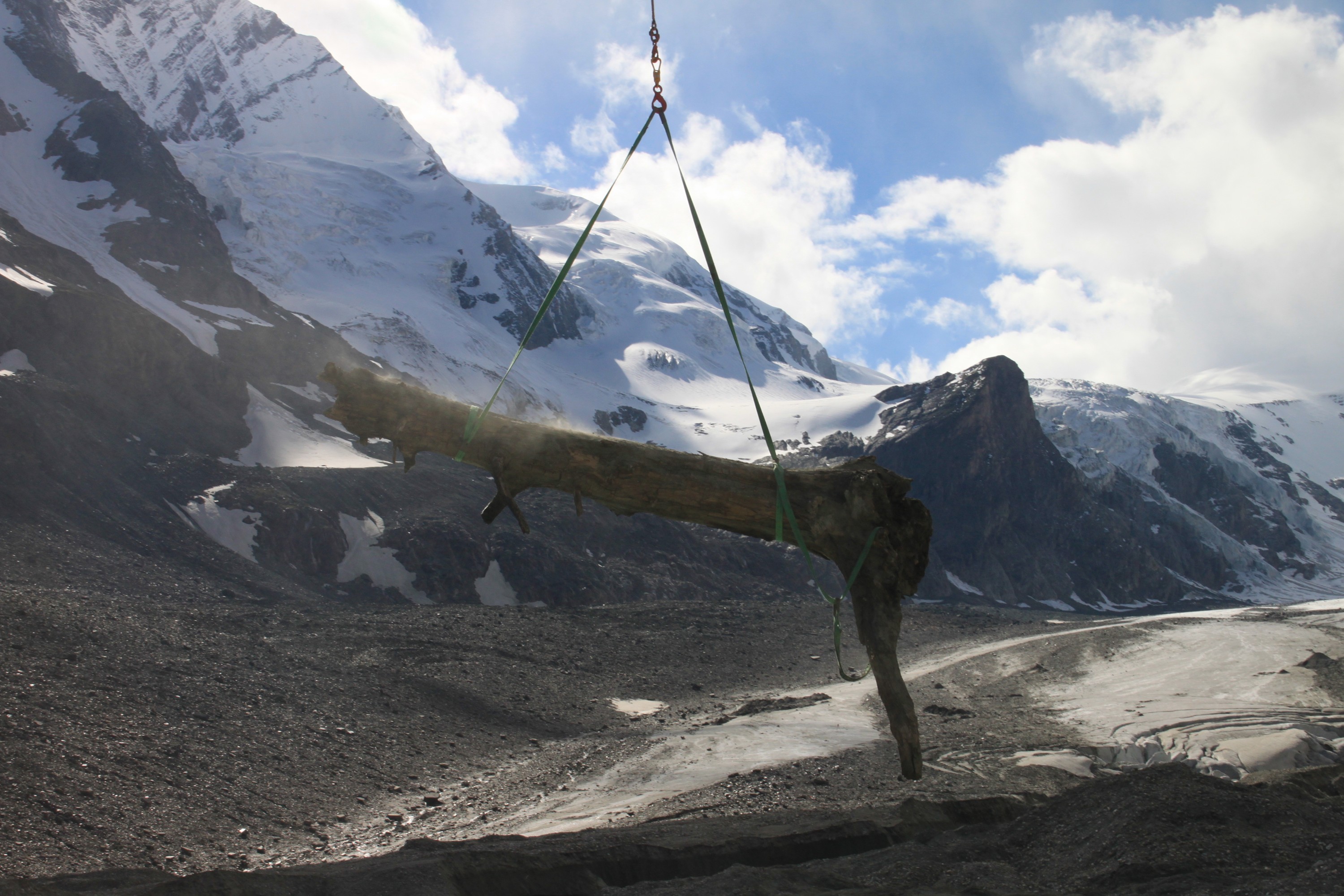 zurückweichenden Alpengletscher geben immer mal wieder Holzfragmente