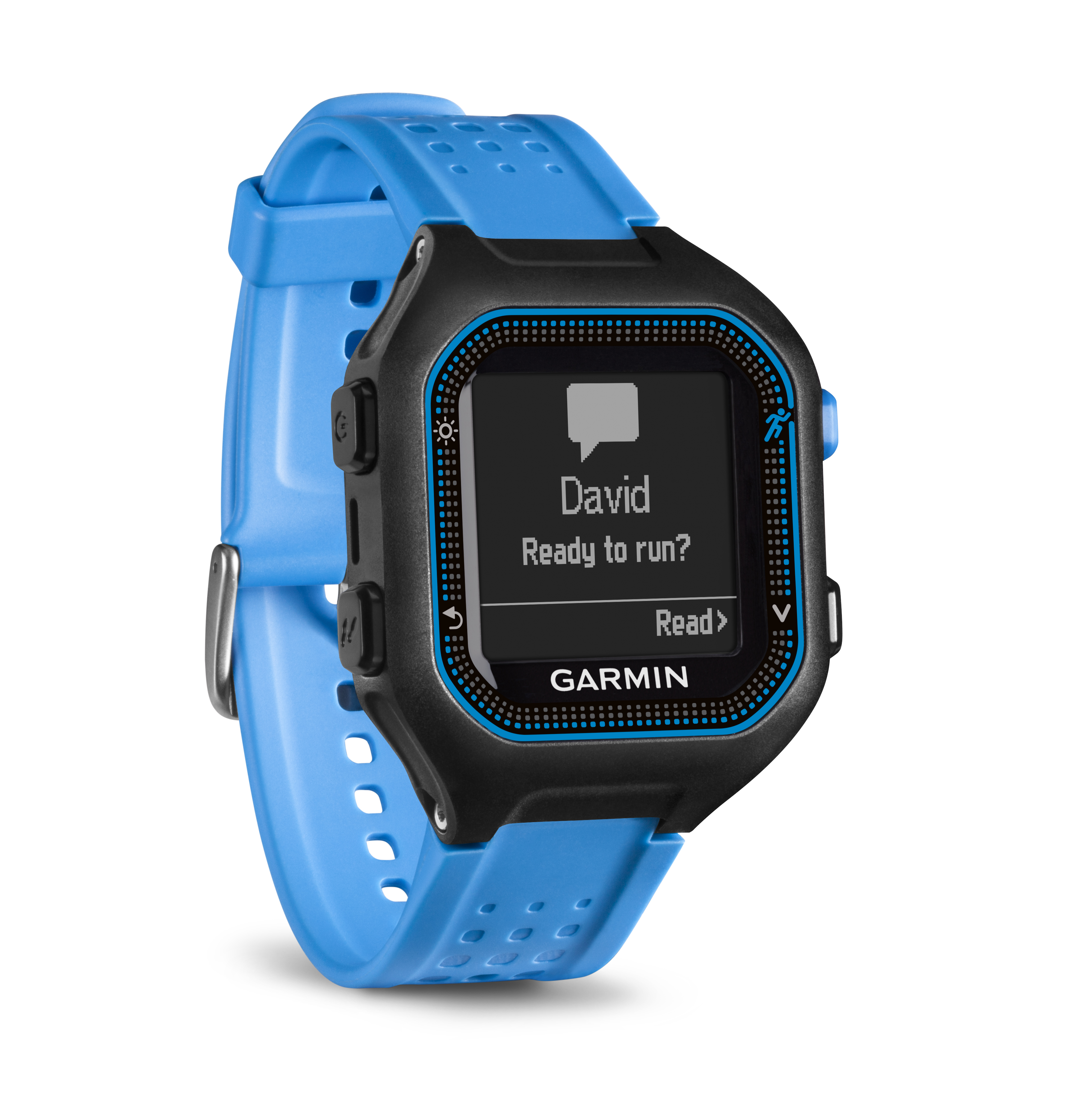 IMMER AUF DEM LAUFENDEN. Ist der Forerunner 25 via Bluetooth mit einem kompatiblen Smartphone verbunden, können Läufer, dank Live-Tracking, ihr Training in Echtzeit mit anderen teilen. Möglich macht das die Garmin Connect Mobile App. Mit Ihr kann das abgeschlossene Training auch direkt von der Uhr hochgeladen und über Facebook und Twitter geteilt werden. Mittels Smart Notifications informiert der neue Forerunner zudem über eingehende Anrufe, SMS und E-Mails.