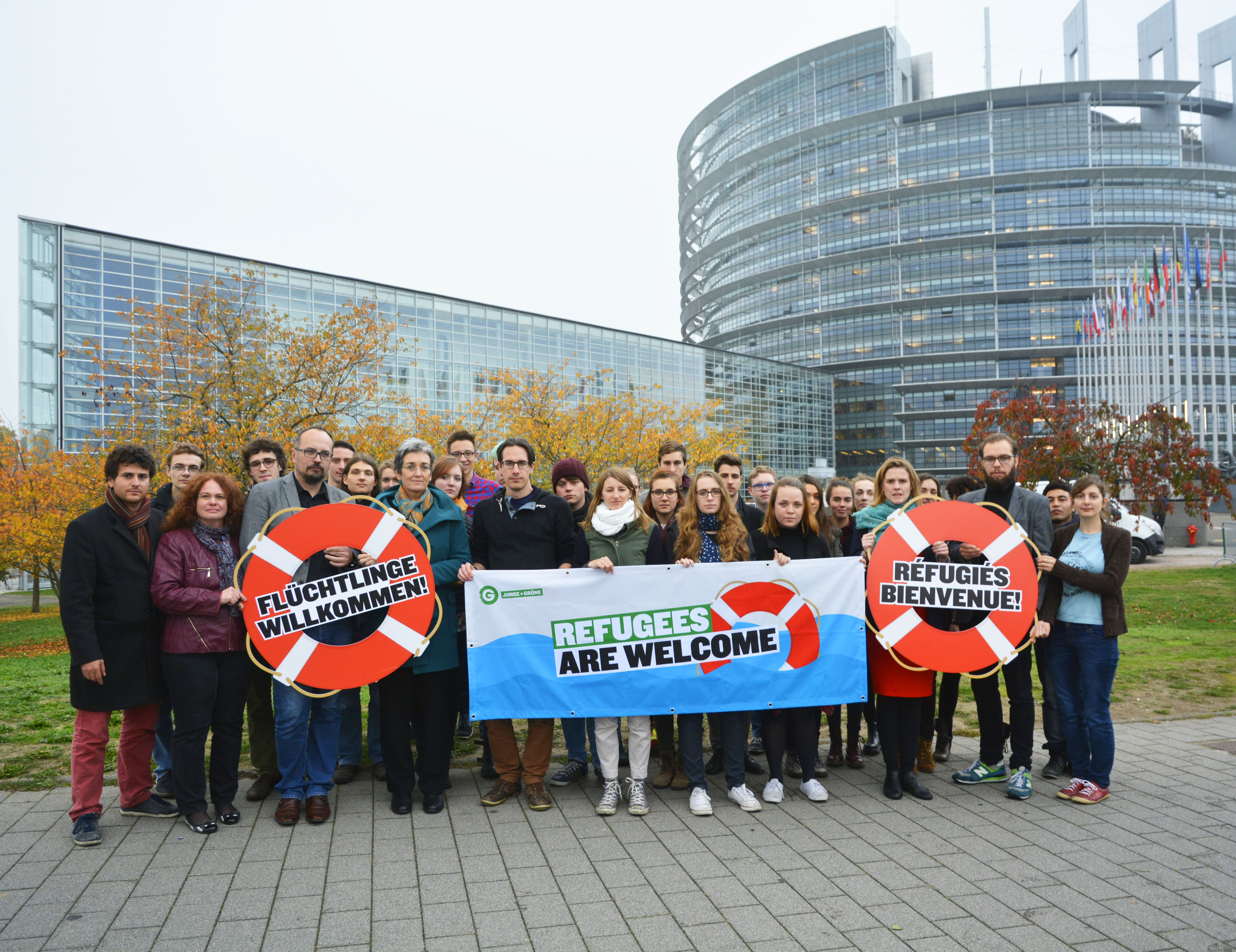 Aktion der Jungen Grünen in Straßburg: "Flüchtlinge Willkommen"