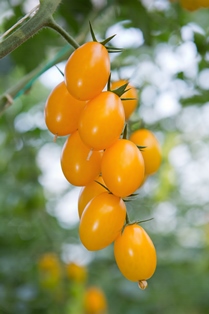 Wien (OTS) - Ovale, dattelförmige, strahlende gelbe Tomaten hängen an