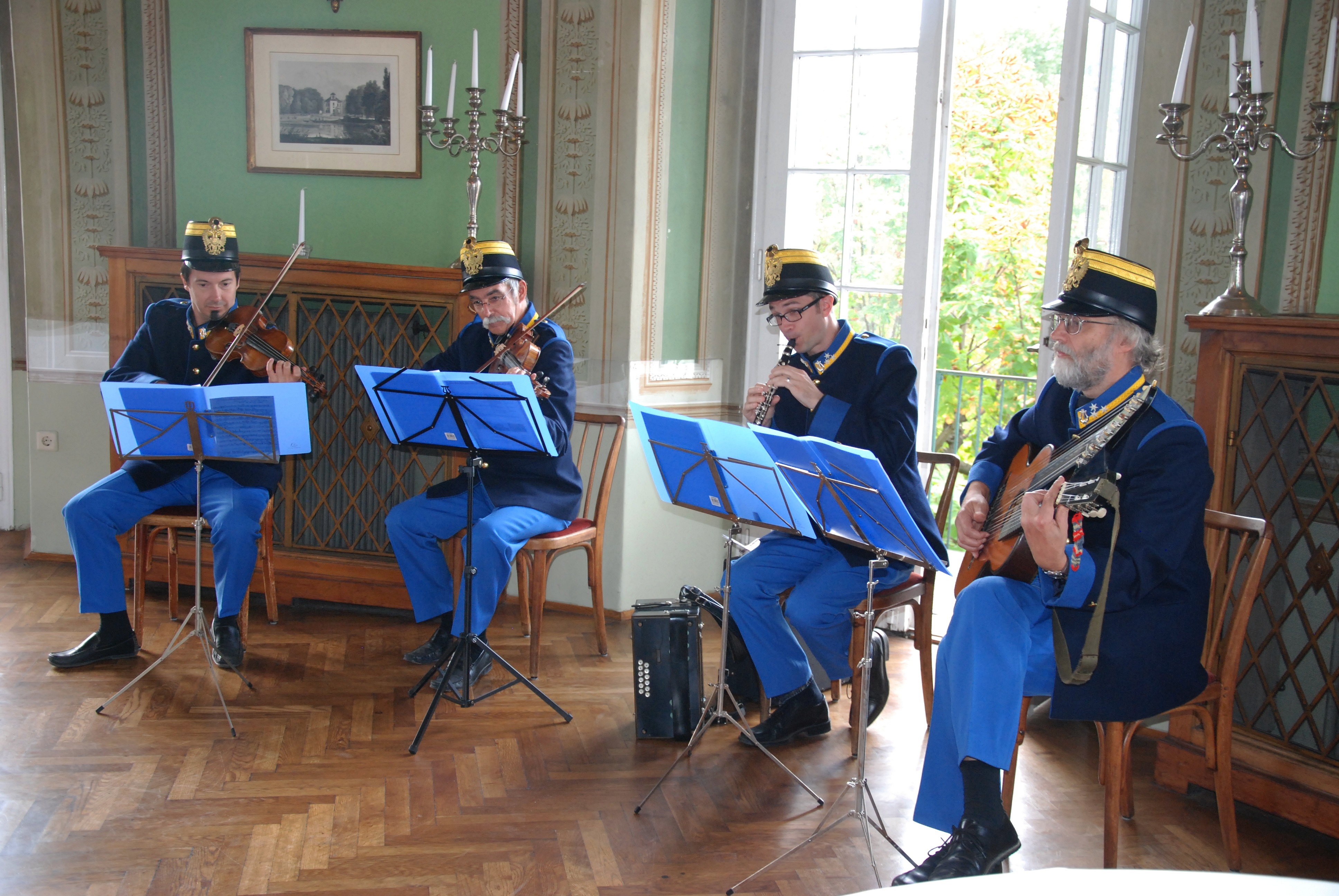in prächtigen blauen Militäruniformen der k&k-Zeit wie zu Kaisers