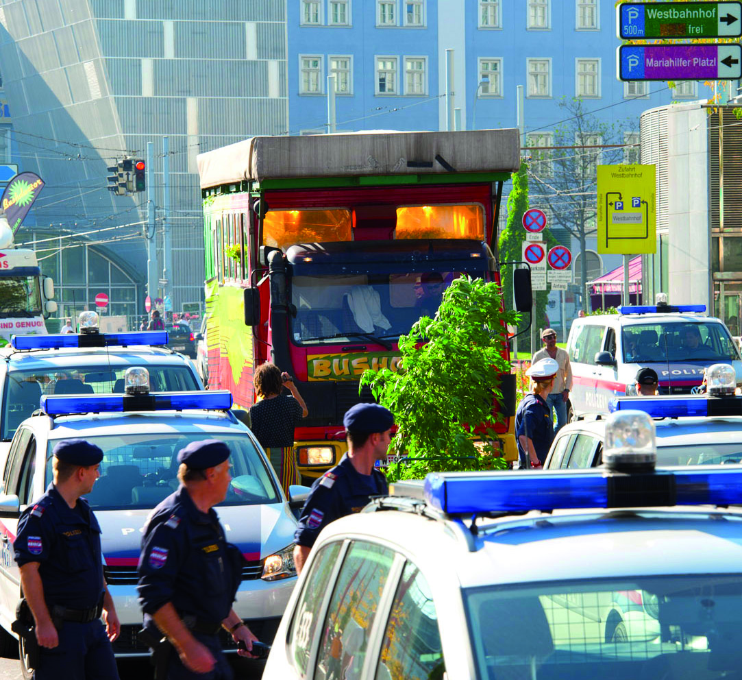 "Hempembassy Vienna" im "Bushmobil" stattfinden. Die Argumente der