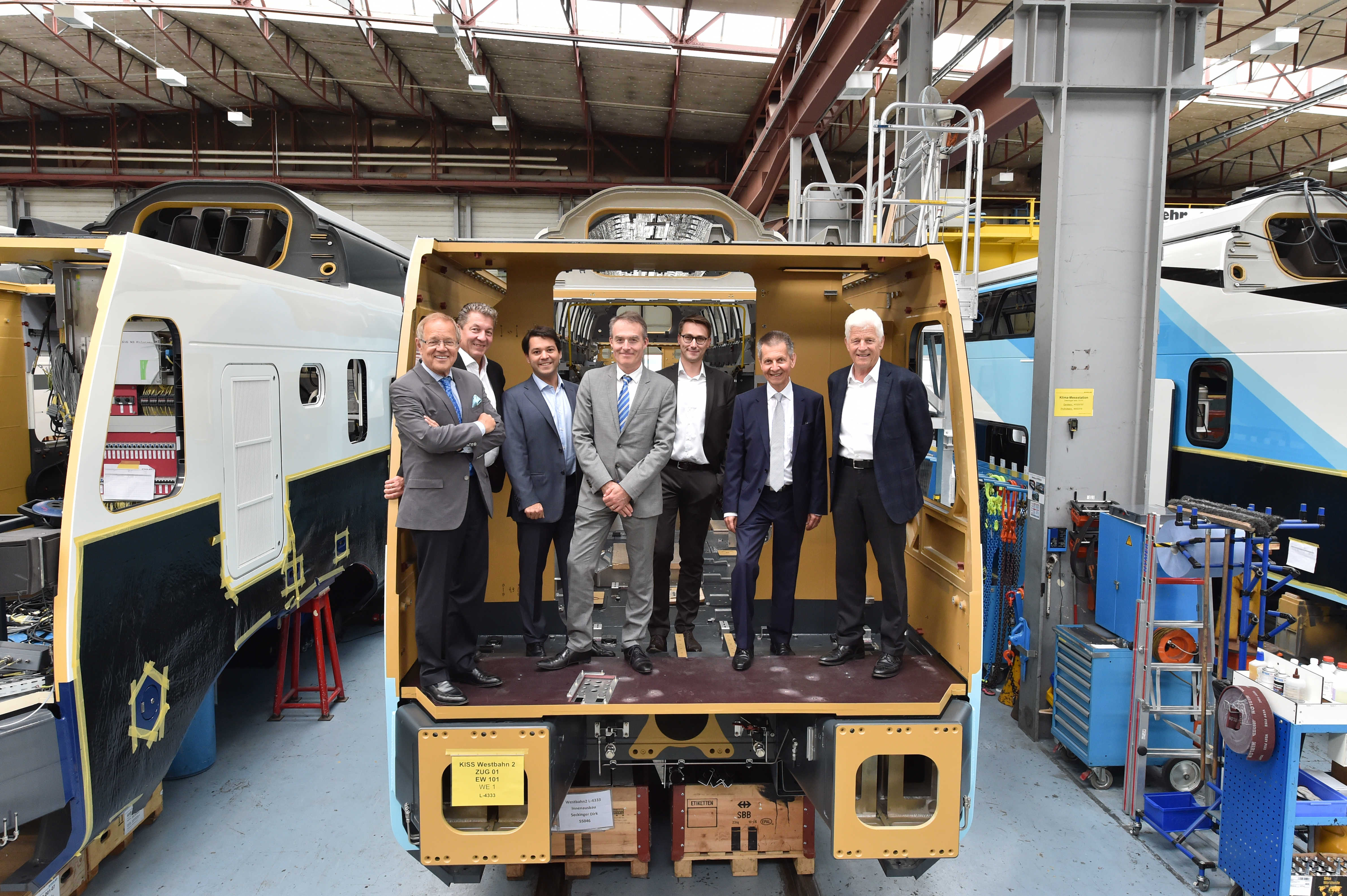 Der Aufsichtsrat der WESTbahn-Konzernmutter Rail Holding AG unter der Leitung von Dr. Benedikt Weibel, ehemals CEO der SBB, konnte den Baufortschritt der 2. Serie der WESTbahn Doppelstockzüge im Doppelstock-Kompetenzzentrum in Altenrhein im Kanton St. Gallen besichtigen.