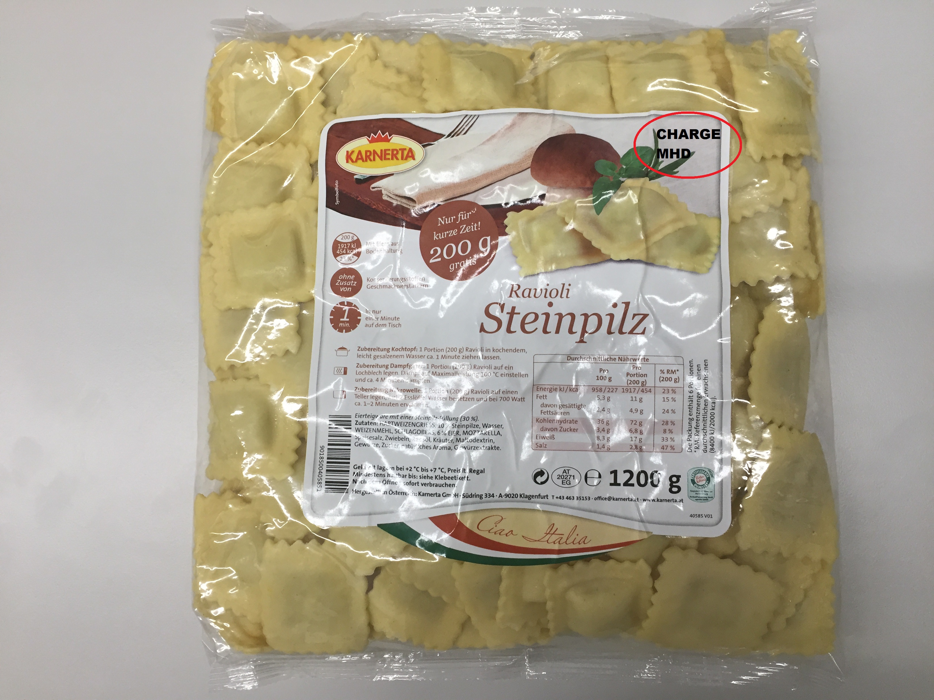 Utl.: Die KARNERTA GmbH ruft Nudeln mit Steinpilzfülle aufgrund