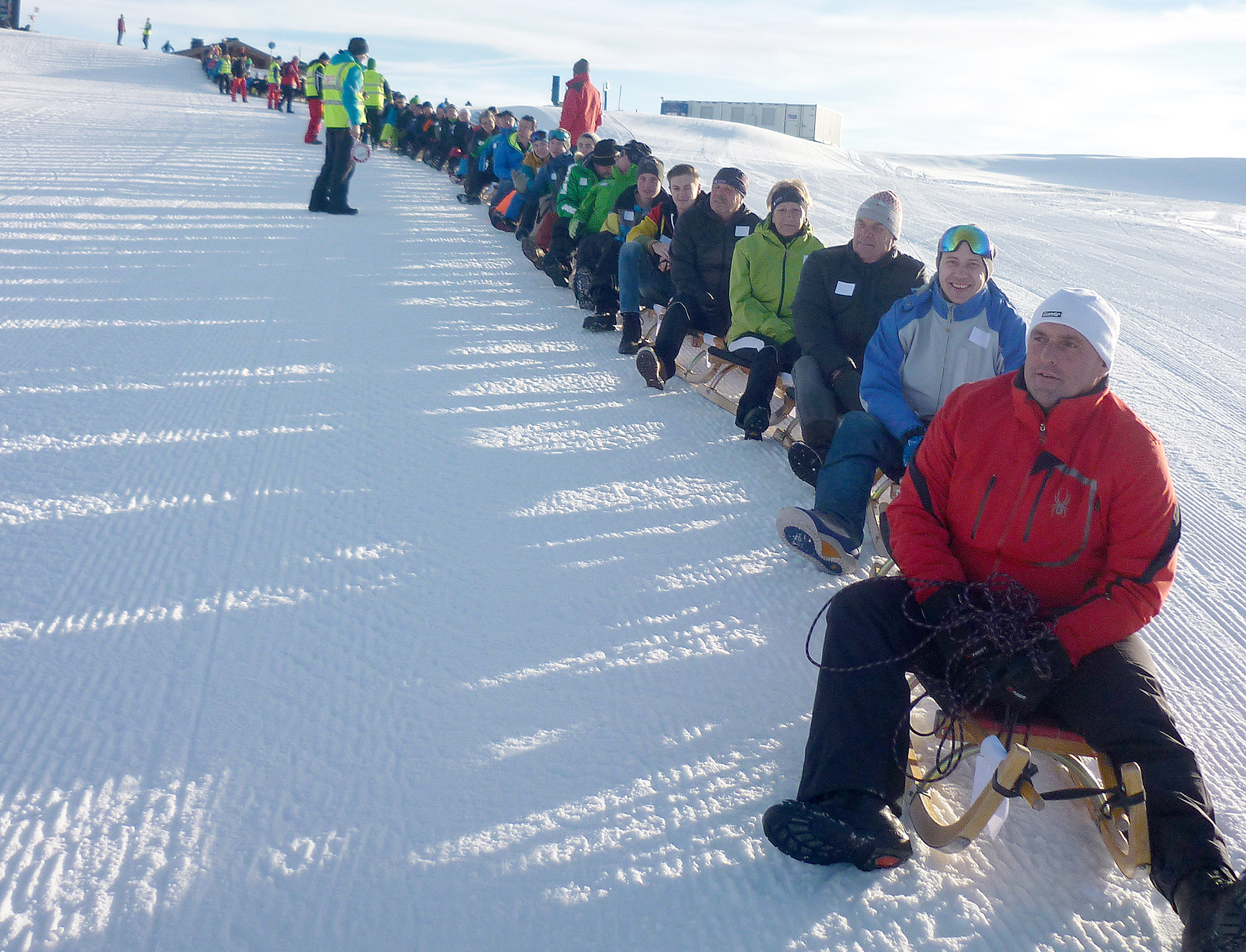Guinness World Records™ Versuch um die längste Rodlerkette der Welt.