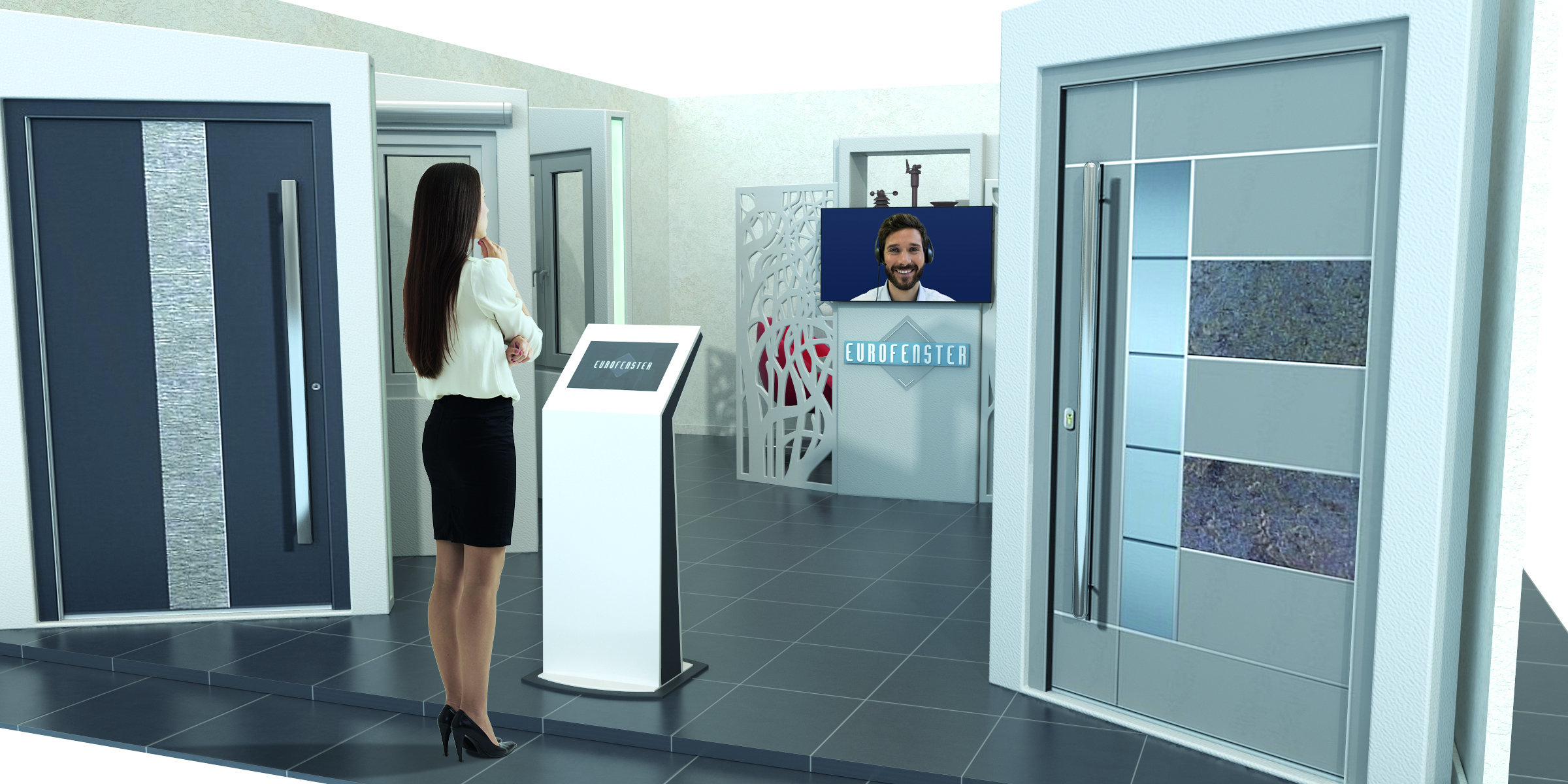 Gleichzeitig möchte EUROFENSTER Preistransparenz in den schwer überschaubaren Fenstermarkt bringen und bietet mit dem Preisrechner ein einfaches Tool dazu an. Der interaktive Schauraum ist zweigeteilt: im vorderen Bereich informieren die Verkaufsberater per Videokonferenz über neueste Trends der Fensterbranche oder vereinbaren einen kostenlosen Vor-Ort-Termin, im hinteren Bereich können von Kunden mitgebrachte Pläne oder Skizzen mit dem Berater über Videokonferenz besprochen und gemeinsam am interaktiven Beratungstisch bearbeitet werden. Für längere Beratungen bietet EUROFENSTER den Kunden heißen Kaffee oder Tee - selbstverständlich ebenfalls interaktiv - an.
