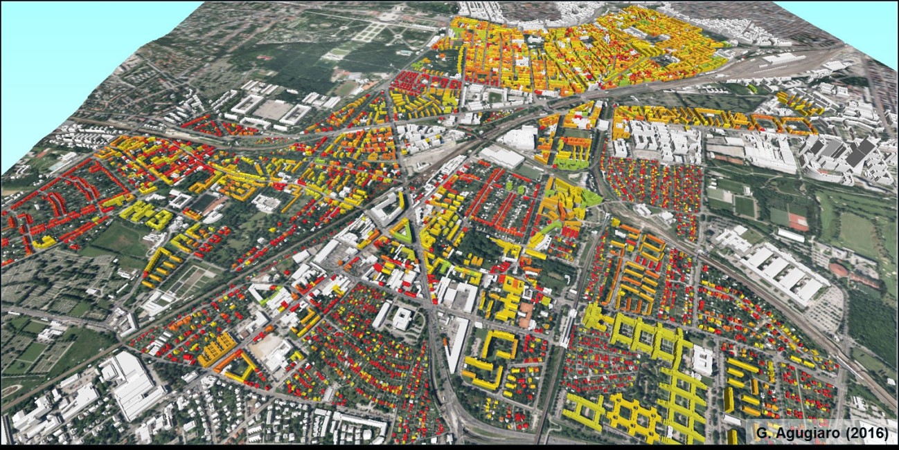 Virtuelle 3D-Stadtmodelle erlauben nicht nur eine dreidimensionale Darstellung relevanter Stadtobjekte, sondern bieten auch eine harmonisierte und standardisierte Quelle unterschiedlicher Daten für die urbane Raum- und Energieplanung. Eine wichtige Rolle spielen dabei Gebäude, die für den Großteil des Energieverbrauchs in Städten verantwortlich sind. Für die Planung nachhaltiger und energieeffizienter Städte ist es daher wichtig, möglichst genau über den aktuellen und künftigen Energiebedarf der einzelnen Gebäude Bescheid zu wissen. Dr. Giorgio Agugiaro, der sich als PostDoc am AIT Center for Energy intensiv mit Fragen der Datenintegration beschäftigte, skizziert ein Beispiel: „Für den Testbezirk Meidling konnten wir zahlreiche Datensätze der Stadt Wien erstmals in ein virtuelles 3D-Modell integrieren. In diesem Modell sind zum Beispiel für jedes Gebäude Informationen wie Baujahr, Volumen, Bruttogeschoßfläche, Anzahl der Einwohner, bereits installierte Solaranlagen sowie die Sonneneinstrahlungswerte enthalten.“ Daraus können weitere Kennwerte wie Heizwärmebedarf, Energieklasse und CO2-Ausstoß bei unterschiedlichen Renovierungsmaßnahmen ermittelt und ohne großen Aufwand dreidimensional dargestellt werden. Damit wird auf einen Blick sichtbar, in welchen Bereichen Sanierungsbedarf besteht.