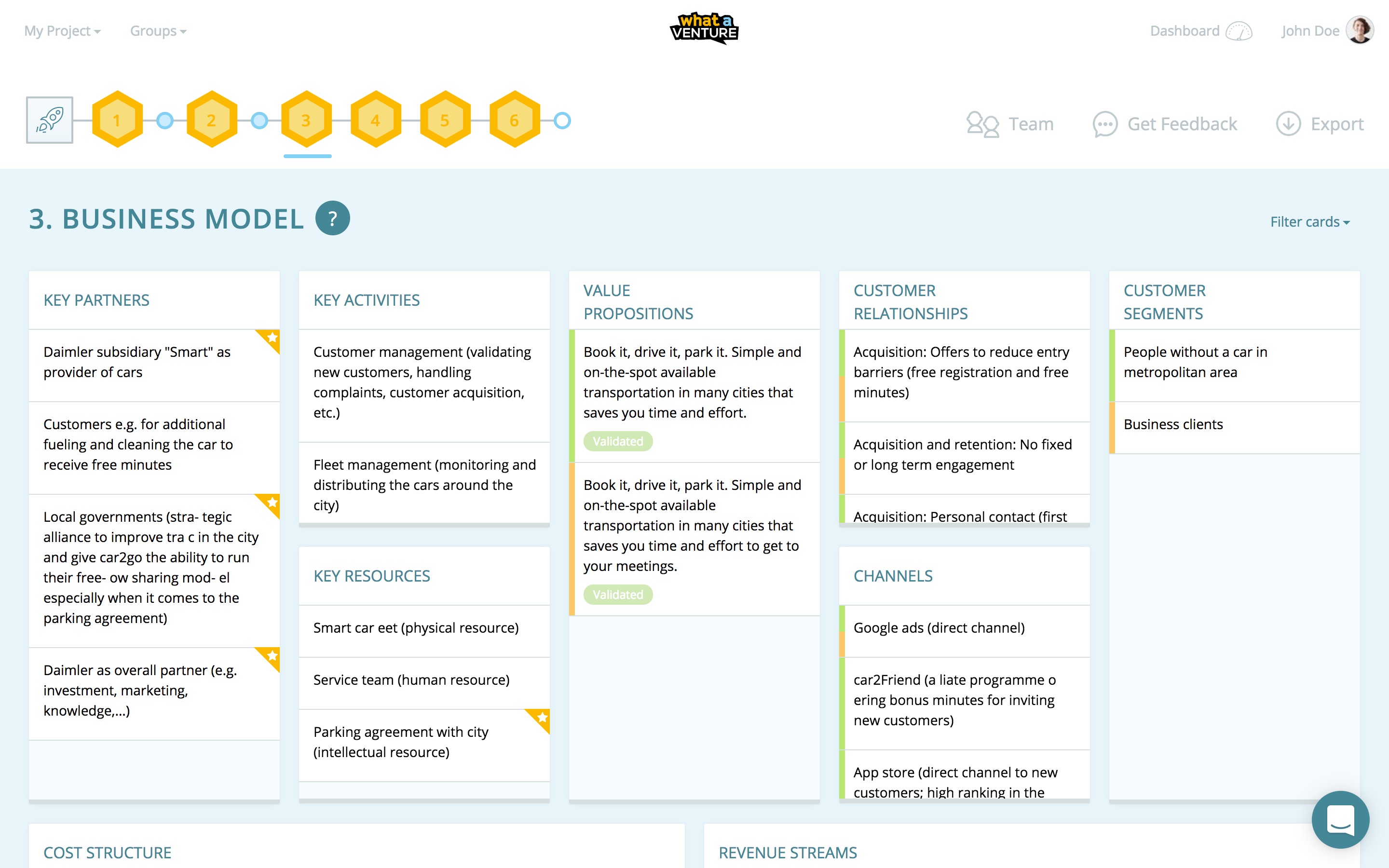 Entrepreneurship will gelernt sein. Studierende aus aller Welt nutzen dafür eine Online-Plattform aus Österreich, auf die auch zahlreiche Startups und etablierte Großkonzerne wie Wien Energie zur Ausarbeitung ihrer Innovationsvorhaben setzen. Die Innovationsplattform von WhatAVenture integriert darin einen eigens entwickelten Prozess, der Teams in 6 Schritten von einer frühen Geschäftsidee bis zur Investment-Reife führt. Weiters ermöglicht die Online-Plattform eine ortsunabhängige Zusammenarbeit von Teams sowie die Einladung von Mentoren zum Projekt.