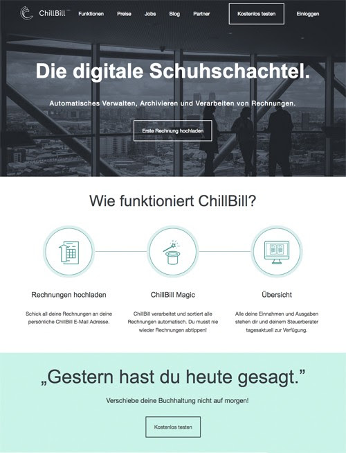 Das Wiener FinTech Start-up gibt bekannt ein Investment im mittleren sechsstelligen Bereich von strategischen Investoren erhalten zu haben. ChillBill bietet eine Lösung für die lästige Zettelwirtschaft, indem bestehende Prozesse automatisiert und digitalisiert werden. Die Cloud-Software empfängt dabei vom Nutzer via E-Mail weitergeleitete Rechnungen und Belege, extrahiert alle relevanten Rechnungsmerkmale, sortiert sie automatisch und leitet sie anschließend geordnet an die Steuerberatung weiter.