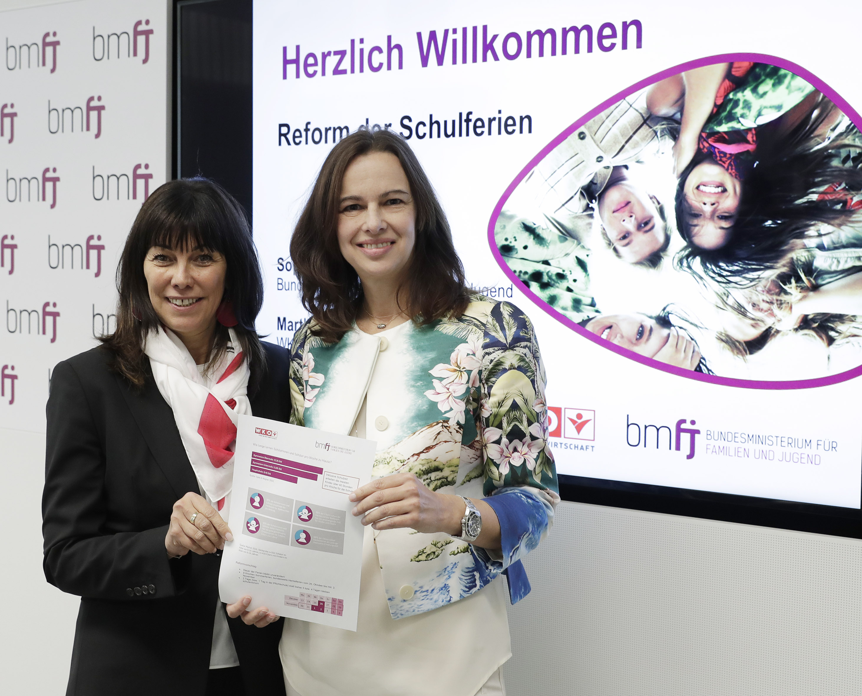 „Wir brauchen eine Reform der Schulferien, die sich am Wohl der Kinder orientiert. Unser ÖVP-Vorschlag sieht daher vor, dass das Ferienausmaß gleich bleibt und die Schülerinnen und Schüler durch bundesweite Herbstferien entlastet werden“, betont Familien- und Jugendministerin Sophie Karmasin bei der heutigen gemeinsamen Pressekonferenz mit Martha Schultz, der Bundesvorsitzenden von Frau in der Wirtschaft (FiW) in der Wirtschaftskammer Österreich. Gemeinsam mit Bildungsexperten, Schulpartnern und Vertretern der Wirtschaft hat die ÖVP in den vergangenen Monaten in zahlreichen Gesprächsrunden ein Modell für die Neugestaltung der Ferien erarbeitet, das die Kinder entlasten und für bessere Planbarkeit auf Seiten der Eltern führen soll. „Untersuchungen von Lernpsychologin Prof. Christiane Spiel von der Universität Wien bestätigen, dass ein hoher Anteil der Schülerinnen und Schüler mehr als 40 Stunden in der Woche für die Schule arbeitet. Die Herbstzeit bis Weihnachten ist mit fast vier Monaten ohne Erholungspause sehr belastend“, so Karmasin.
