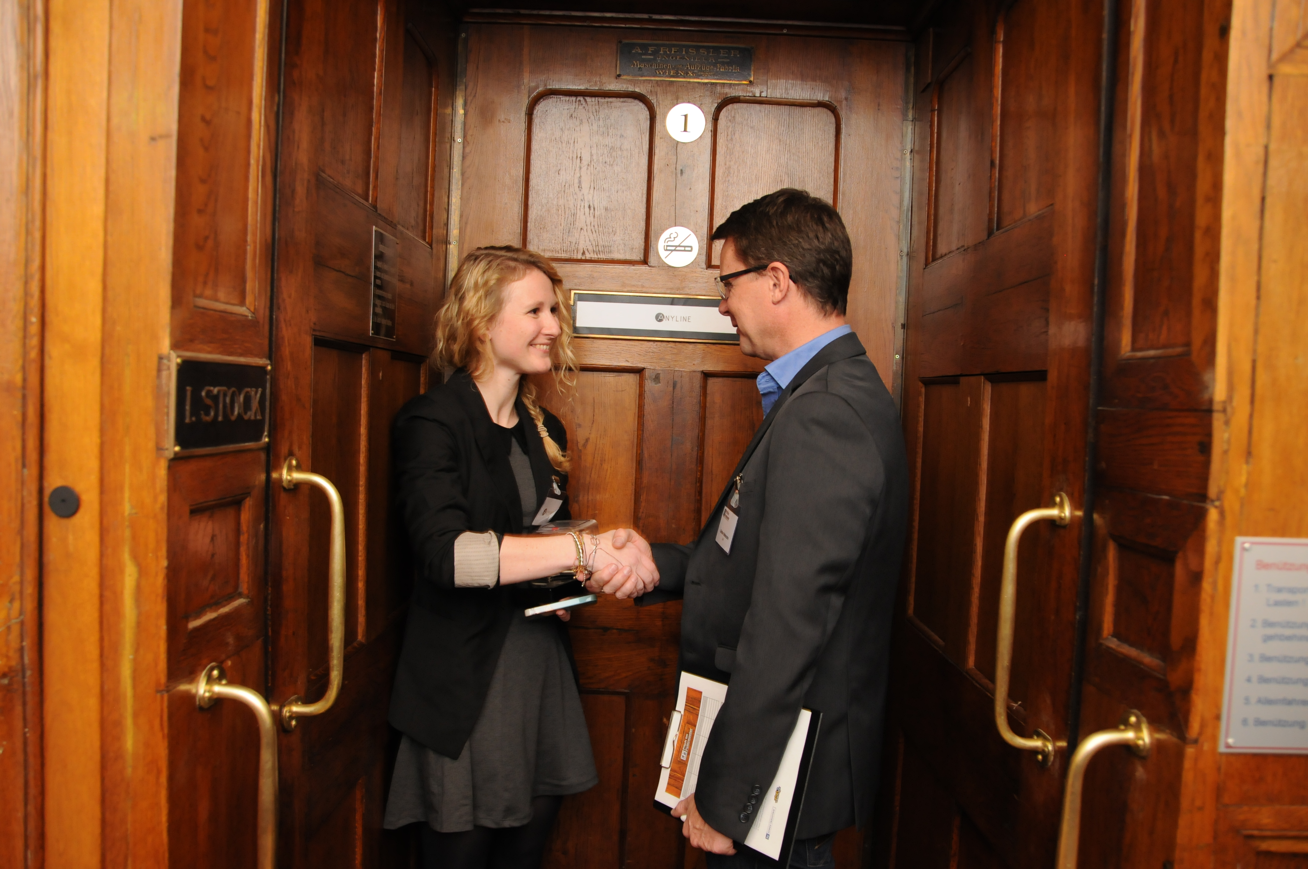 Die Plätze sind streng limitiert: nur die 13 innovativsten Hardware- und Software-Startups im B2B-Sektor werden eingeladen ihre Idee zu präsentieren. Das Besondere daran: der Pitch, also die Kurzpräsentation ihres Geschäftsmodells, findet während der knapp vierminütigen Fahrt im 100 Jahre alten Paternoster statt. Hier trifft Innovation auf Nostalgie. Jedem Startup wird dafür eine Kabine zugeteilt, der nach und nach wechselnde Jurymitglieder aus österreichischen Top-Industrieunternehmen zusteigen.